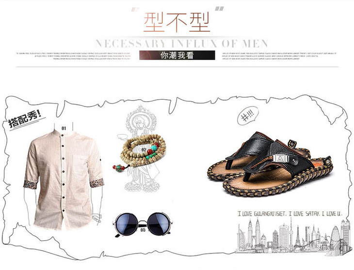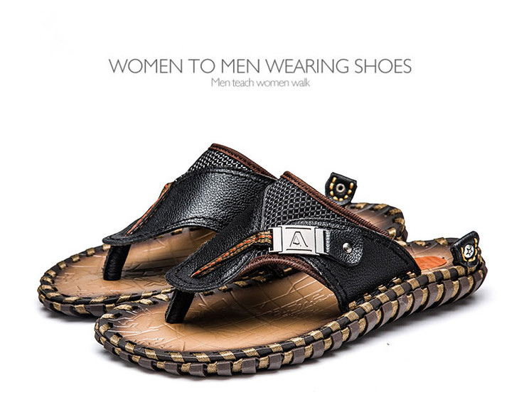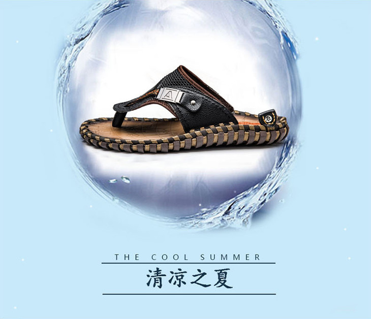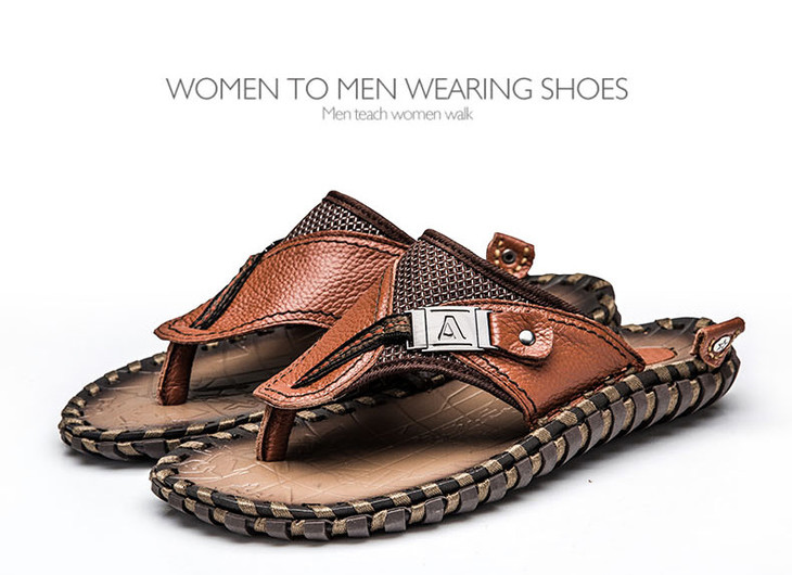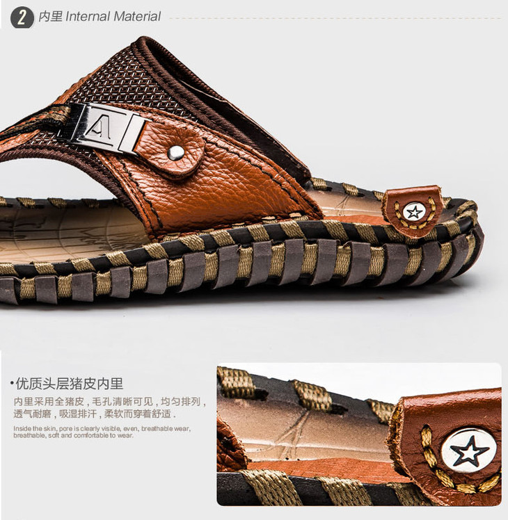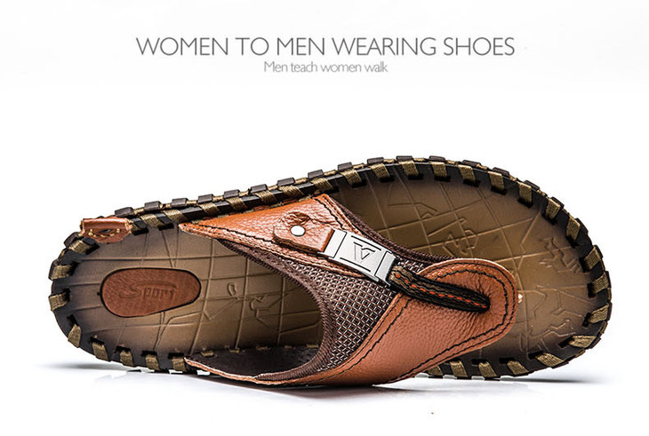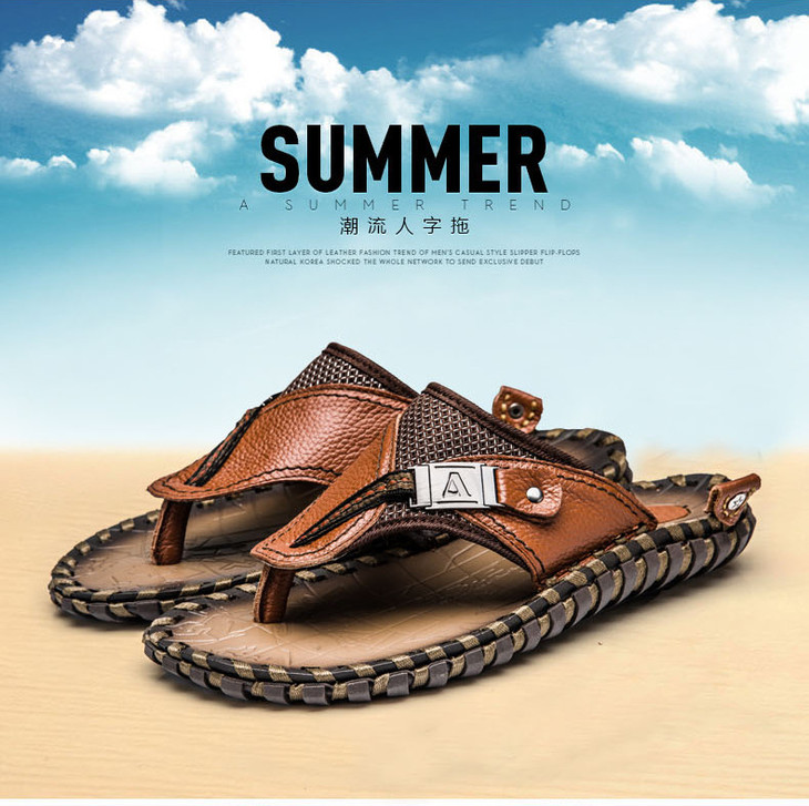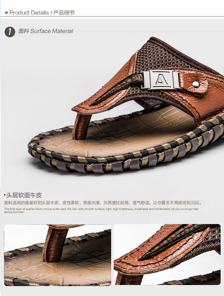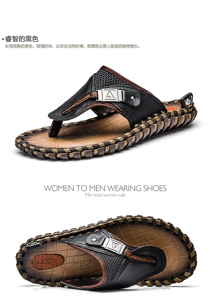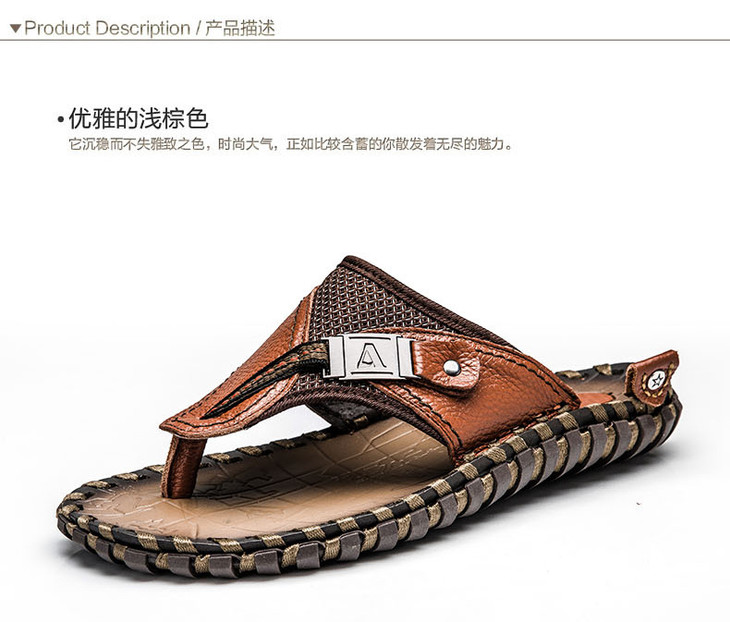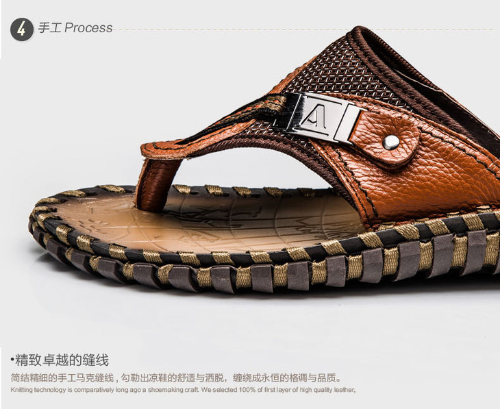 【男士拖鞋】夏季头层小牛皮手工凉拖鞋