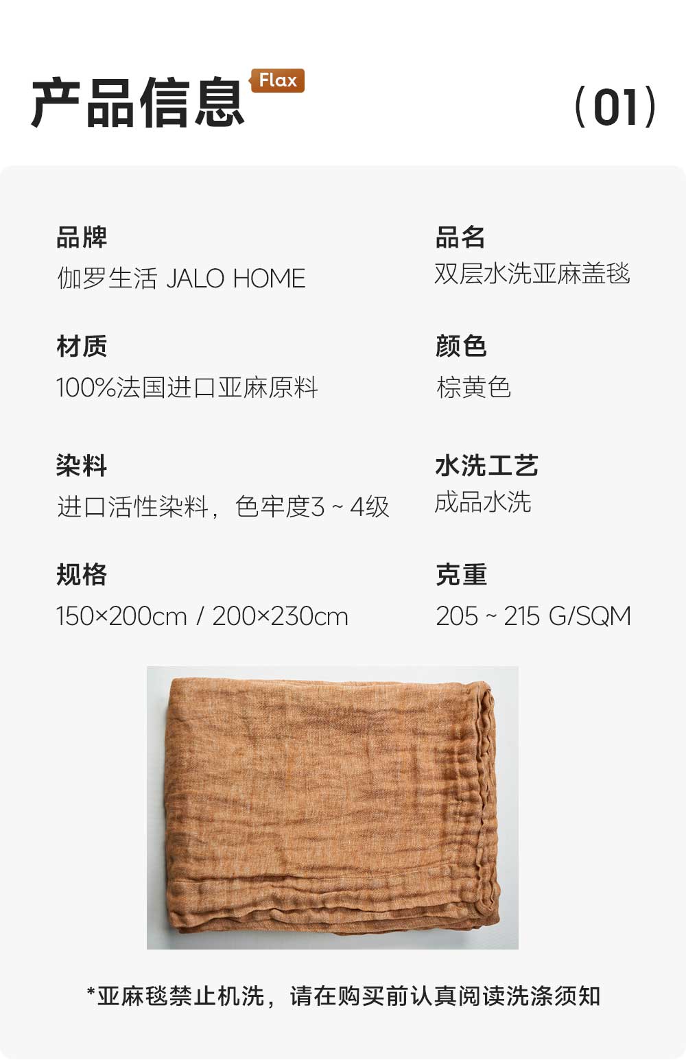 伽罗 JALO 双层水洗亚麻盖毯(请在使用前认真阅读洗涤须知)
