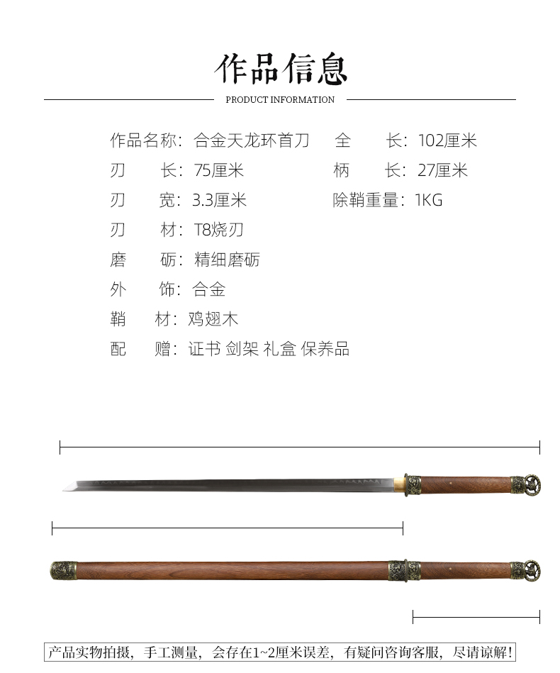 合金天龙环首刀 龙泉沈广隆宝剑 一体刀剑 未开刃