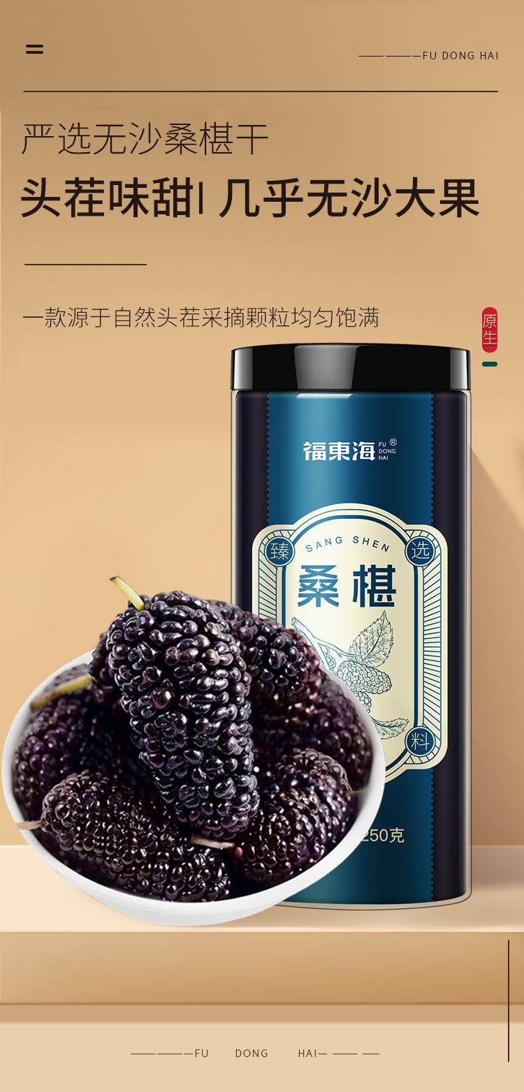 福东海 黑桑葚250克 即食桑椹干无沙子 桑椹子桑葚果果干桑果干泡茶泡水泡酒