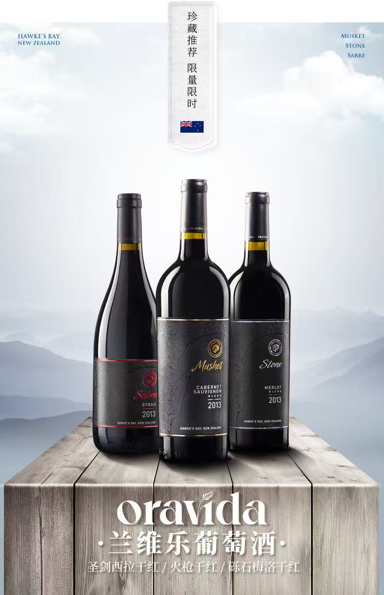 【女神节】圣剑西拉干红-oravida新西兰进口红葡萄酒2014*2瓶+赠800ml含气矿泉水2瓶