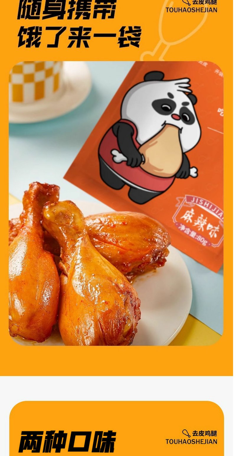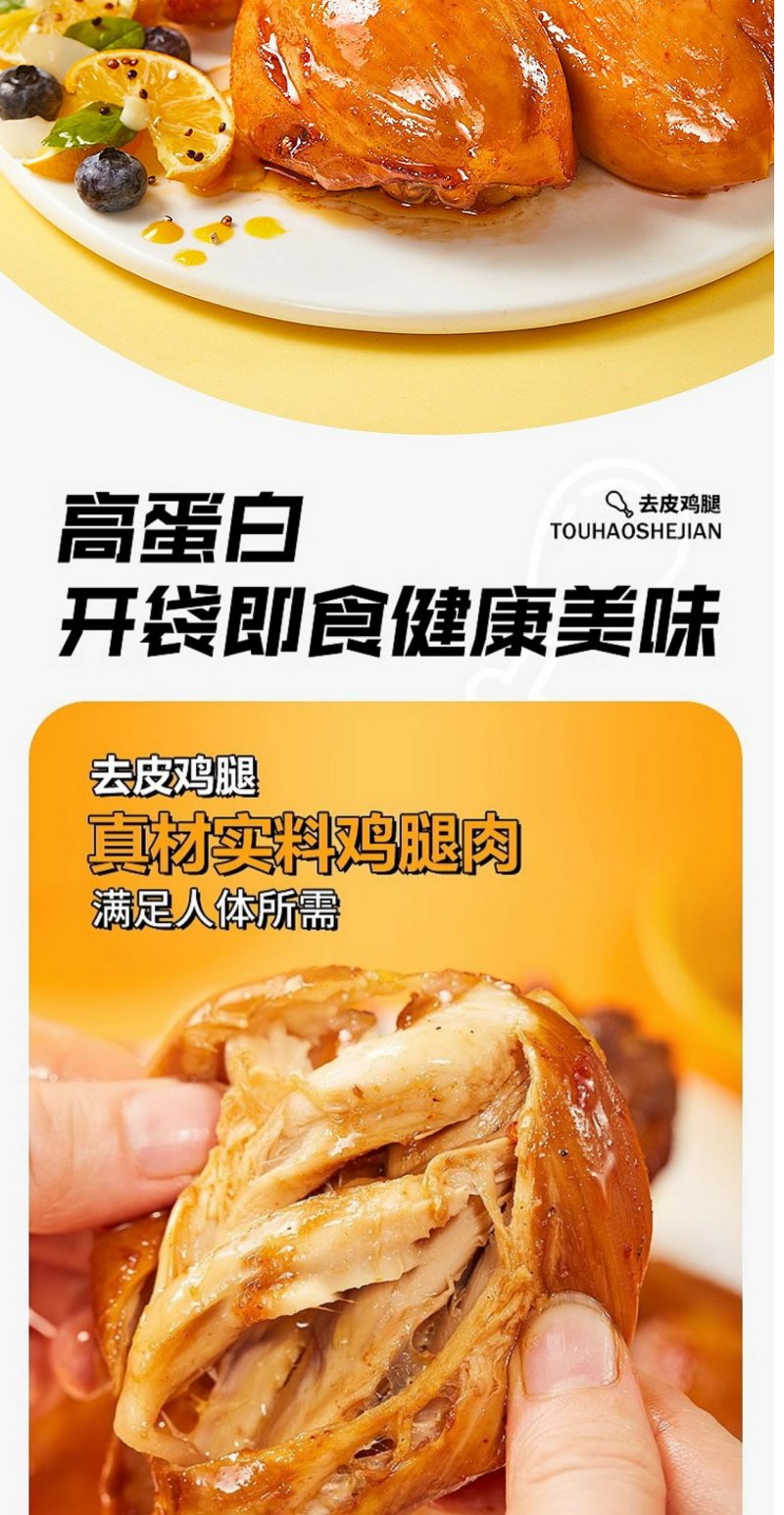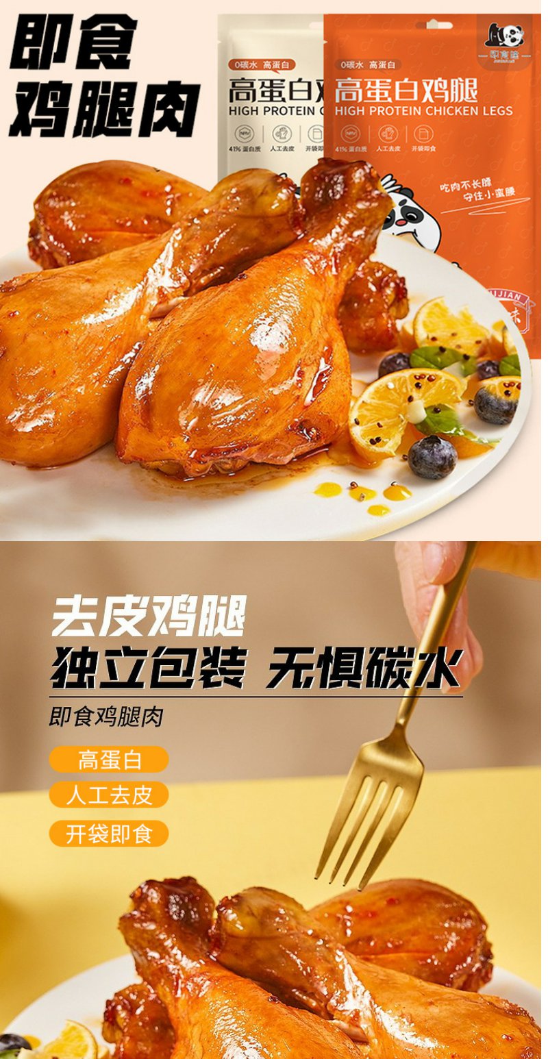 鲨鱼菲特即食健去皮鸡腿肉 孜然味 健身解馋小零食高蛋白80g/袋