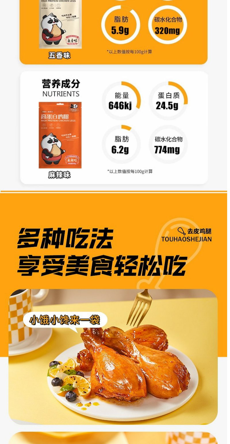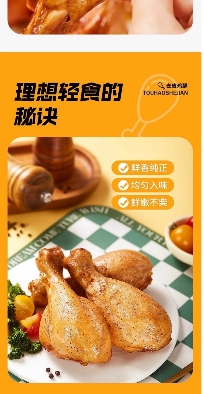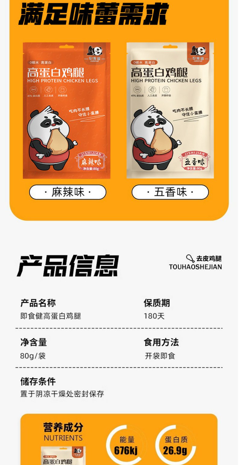 鲨鱼菲特即食健去皮鸡腿肉 孜然味 健身解馋小零食高蛋白80g/袋
