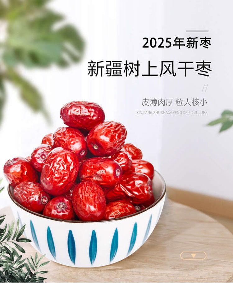 3、2025年的新枣,发货为8-9成干,有一定的水含量(不是邦邦硬的状态,喜欢梆硬的12月份再下单,接受不了的请勿拍)