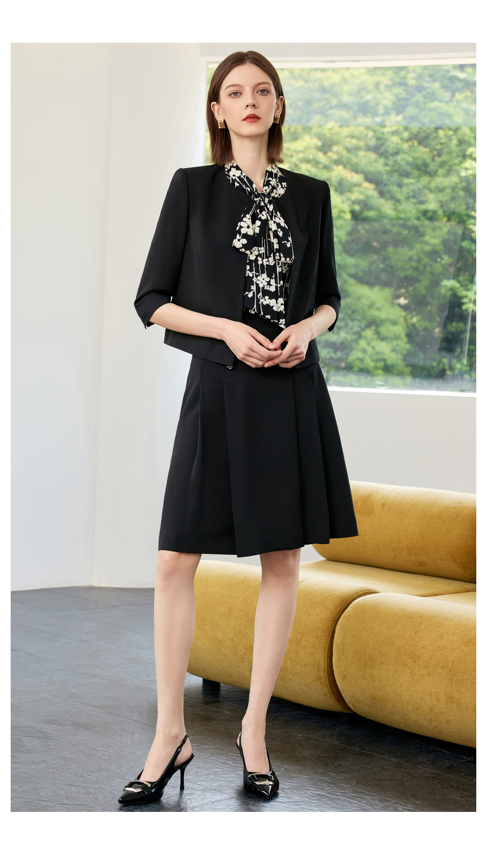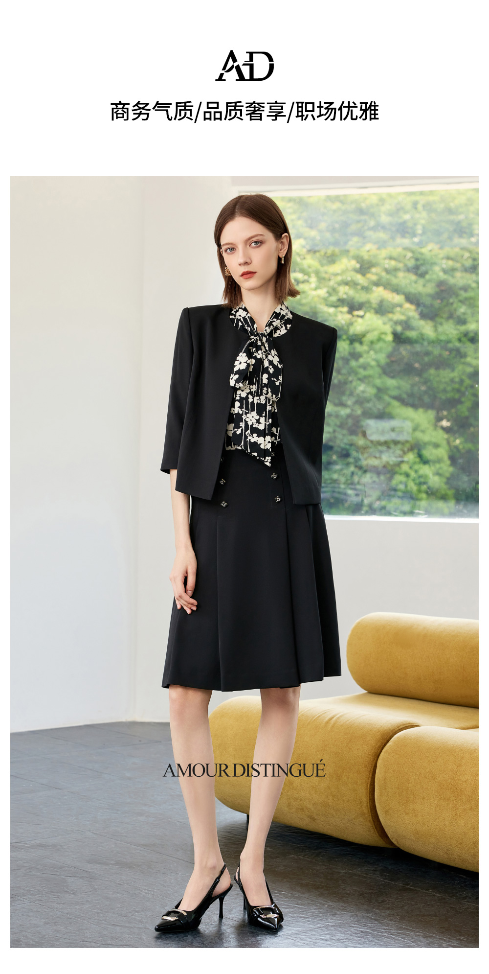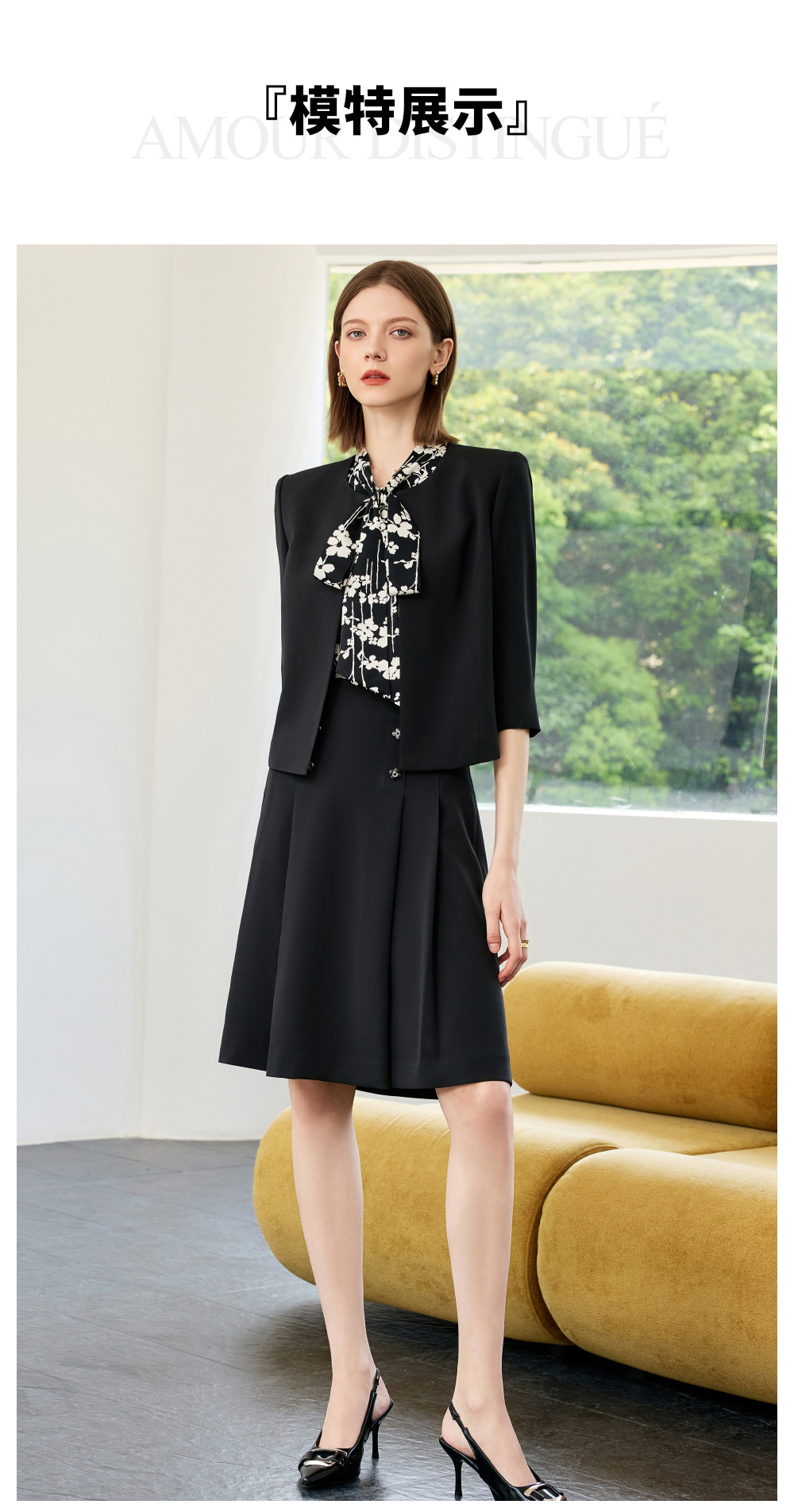 AD高端职业装套装女2025新款夏季七分袖西装外套高级感勤百褶裙通