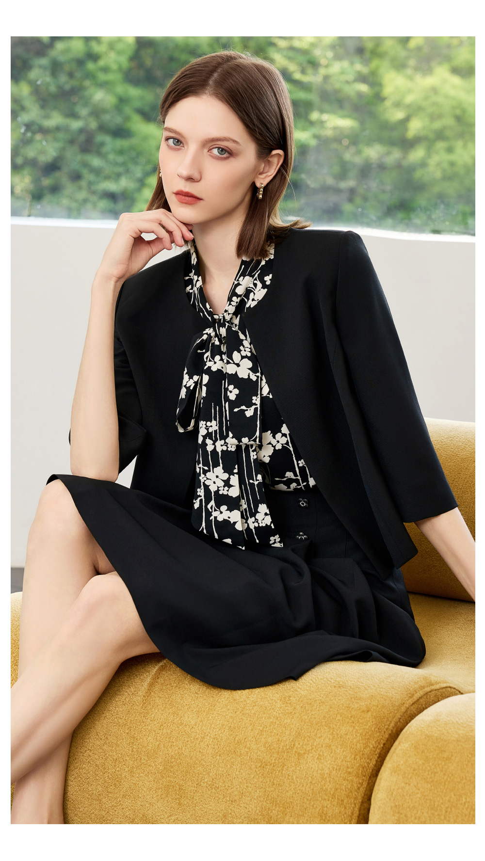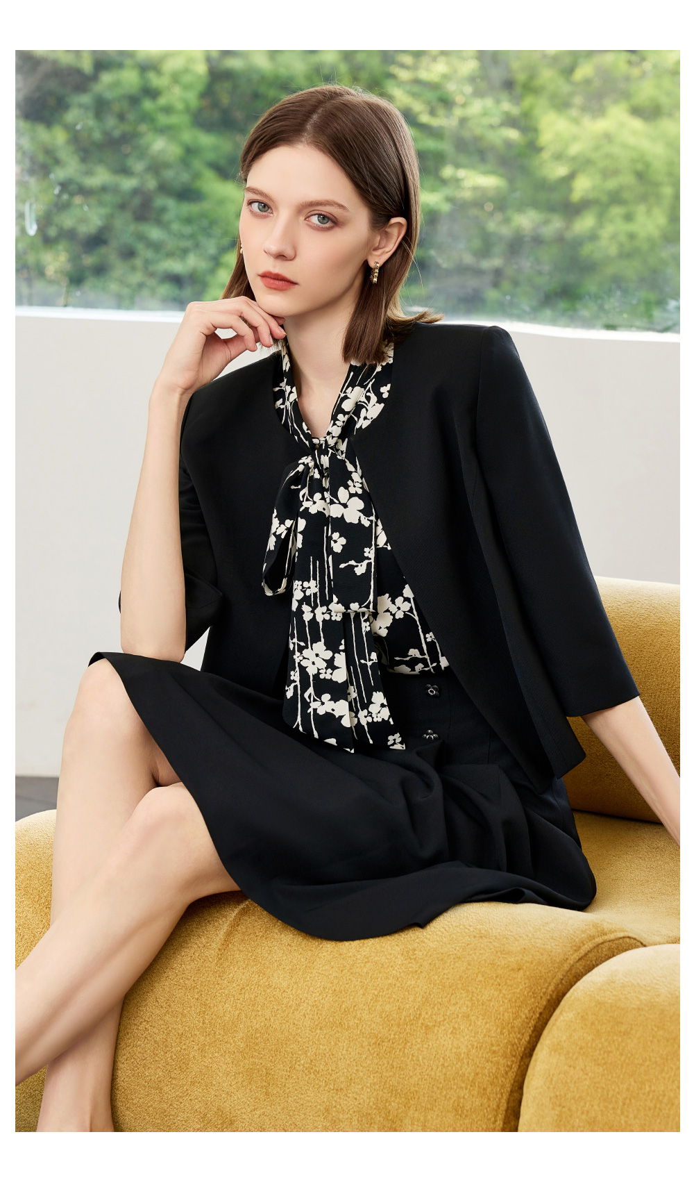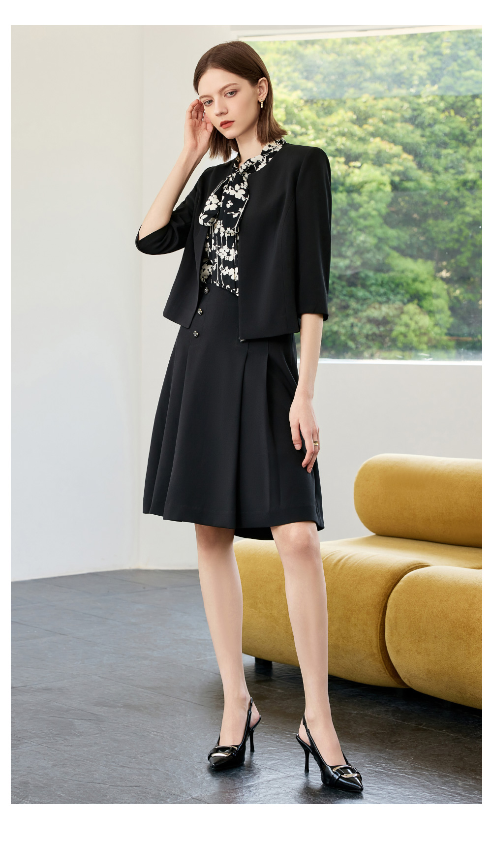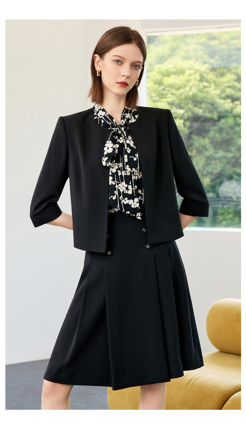 AD高端职业装套装女2025新款夏季七分袖西装外套高级感勤百褶裙通
