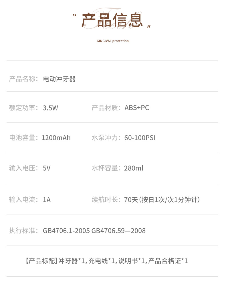 便携式电动冲牙器 高性能版正畸清洁专用家用洗牙器水牙线防水冲牙器DIY洗牙神器