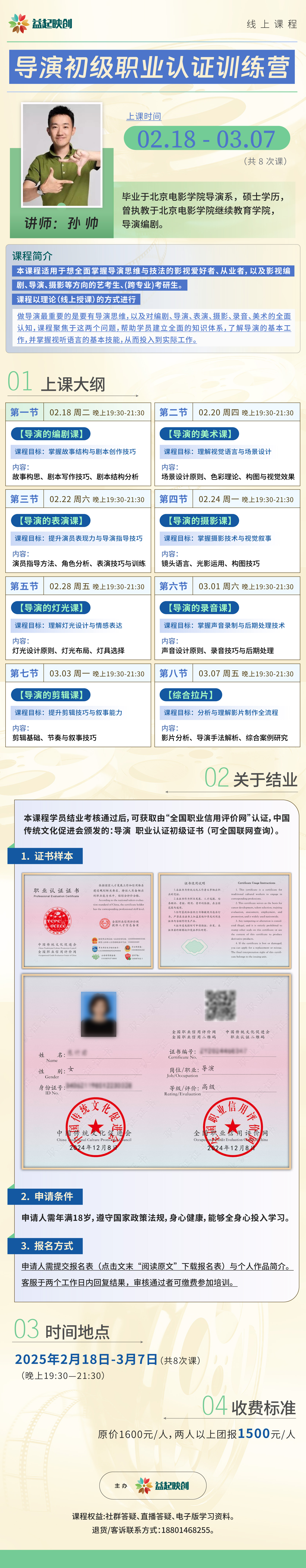 【线上课程】导演(初级)职业认证课程 商品缩略图0