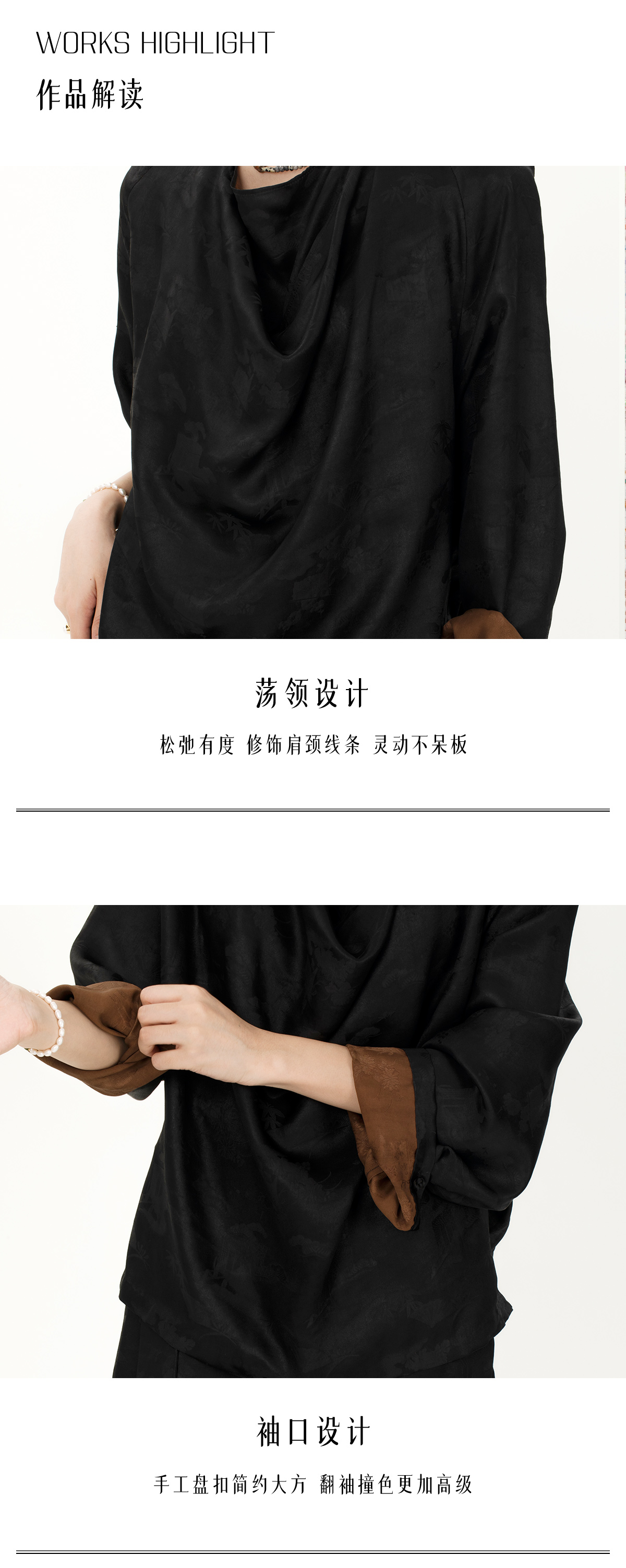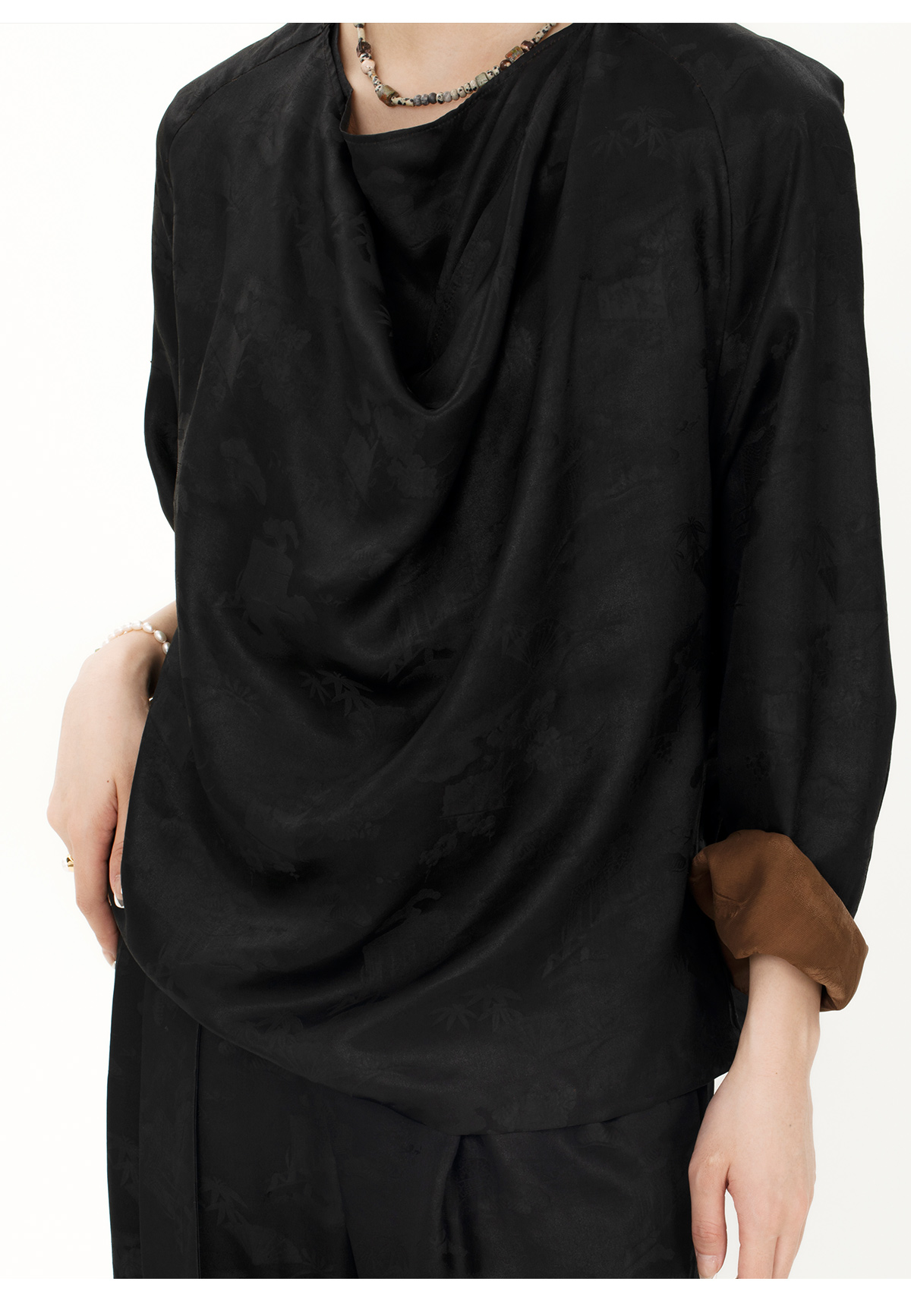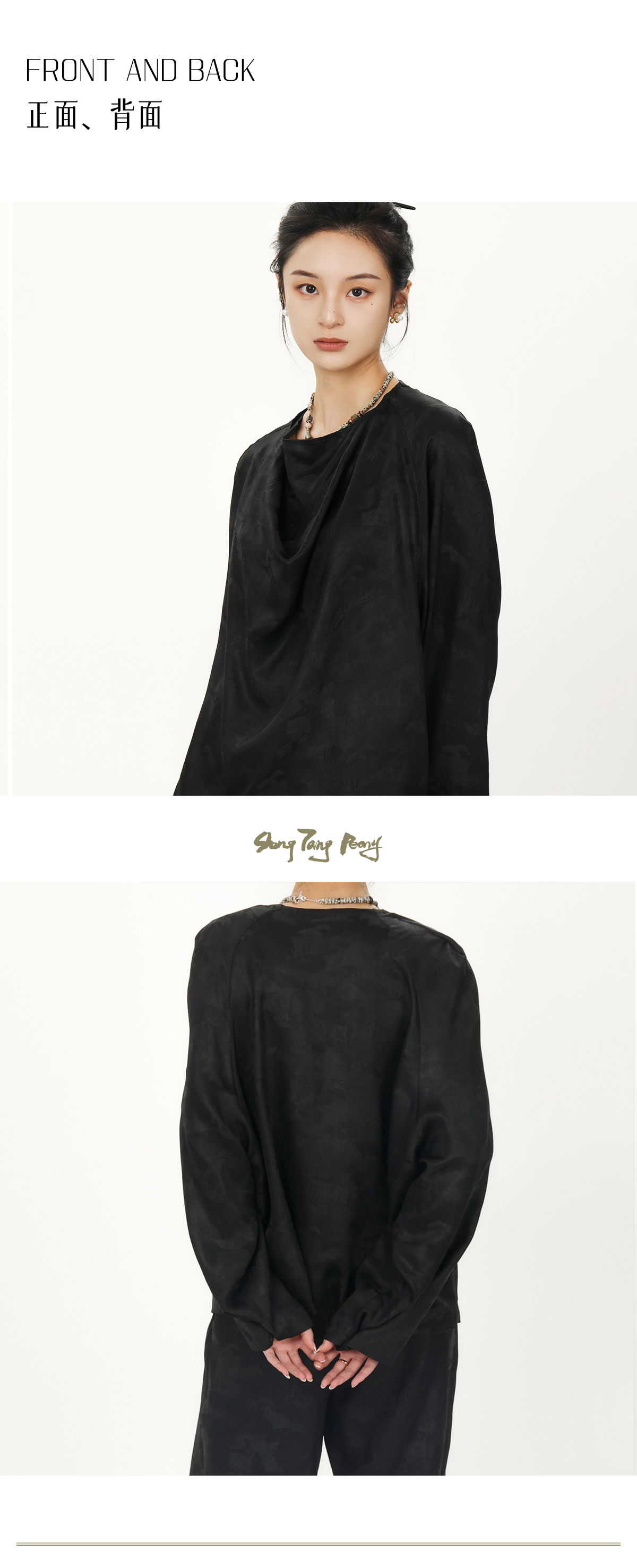 盛唐牡丹 |真丝压花圆领女上衣-黑色