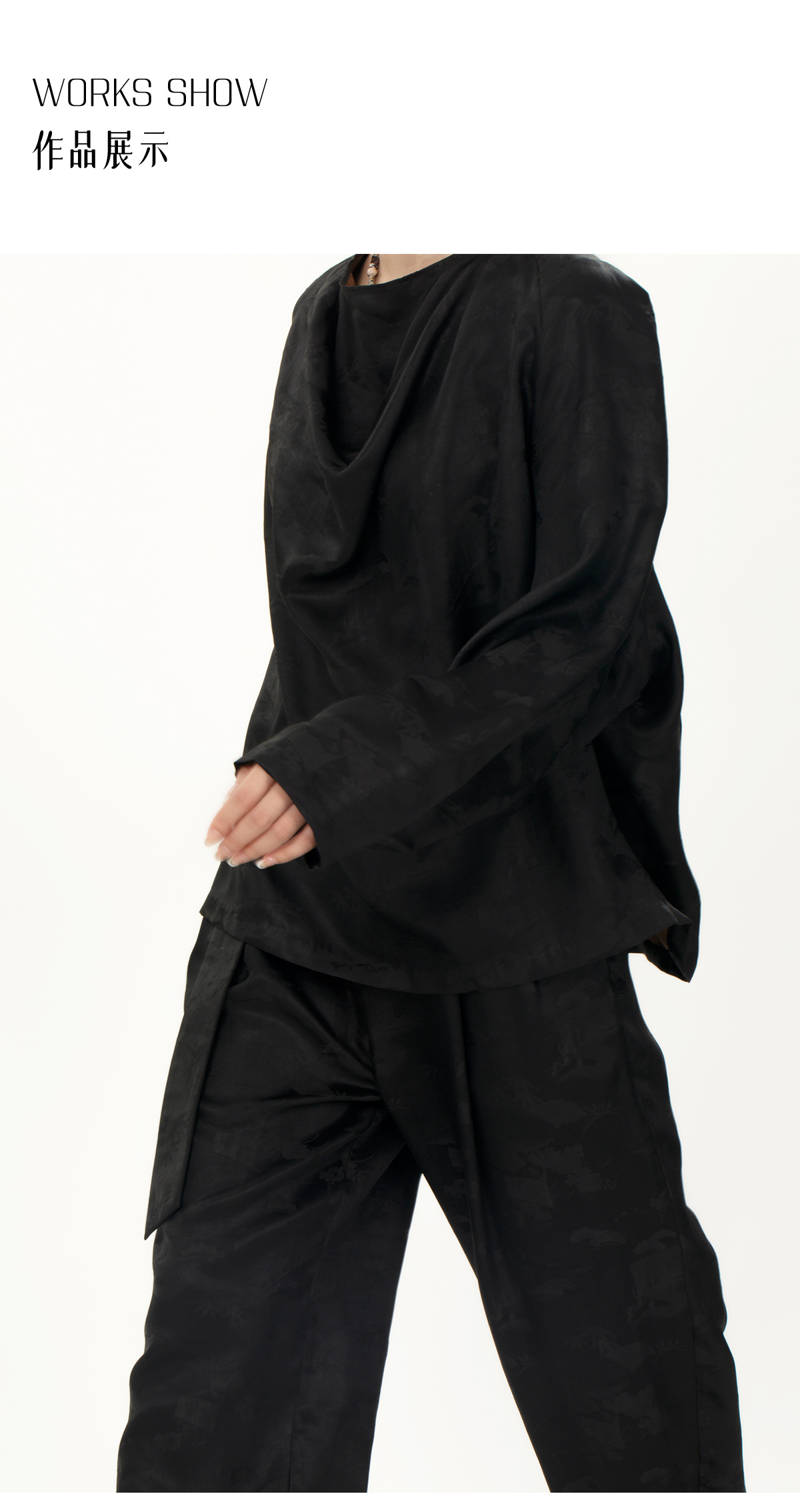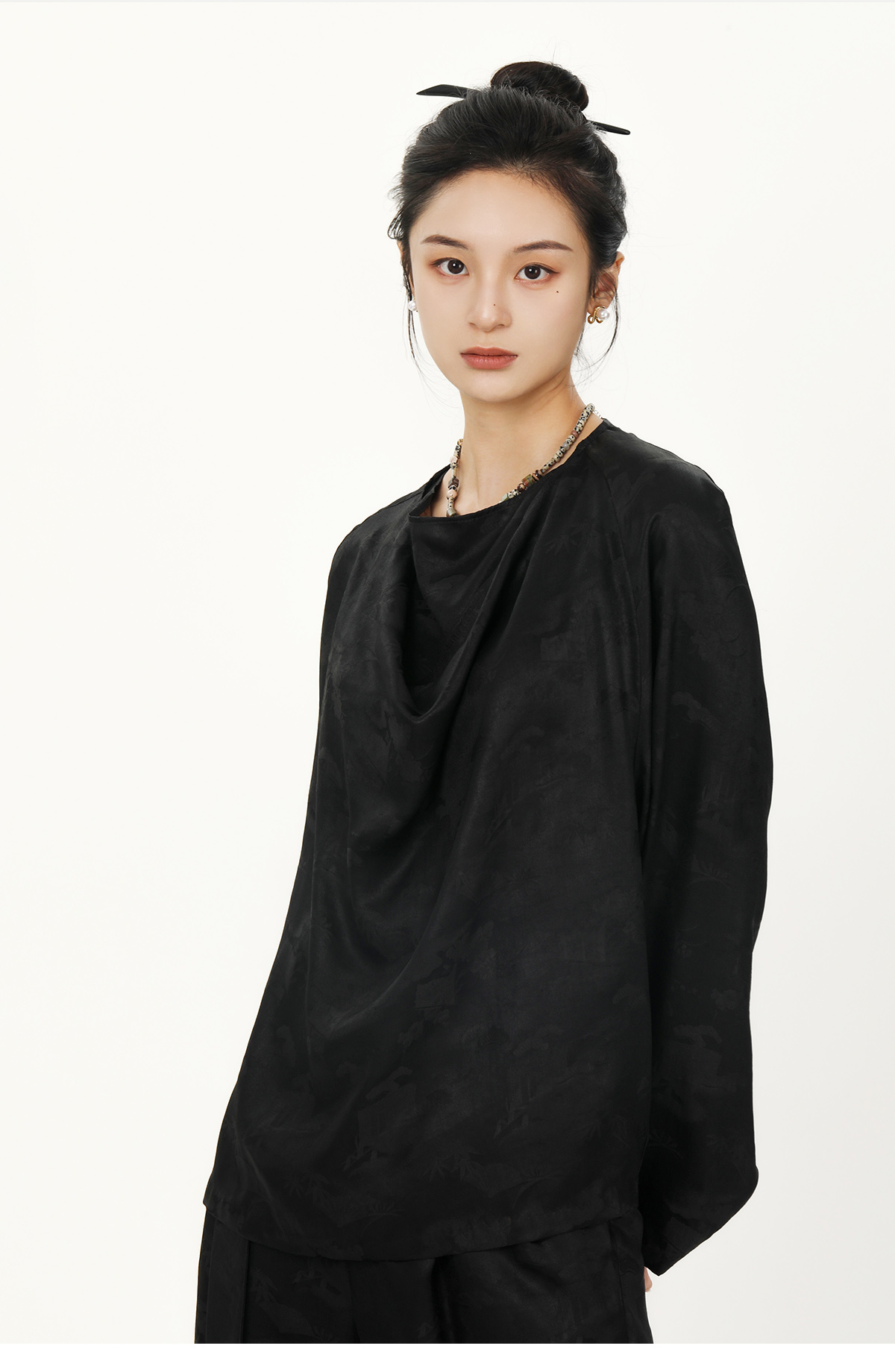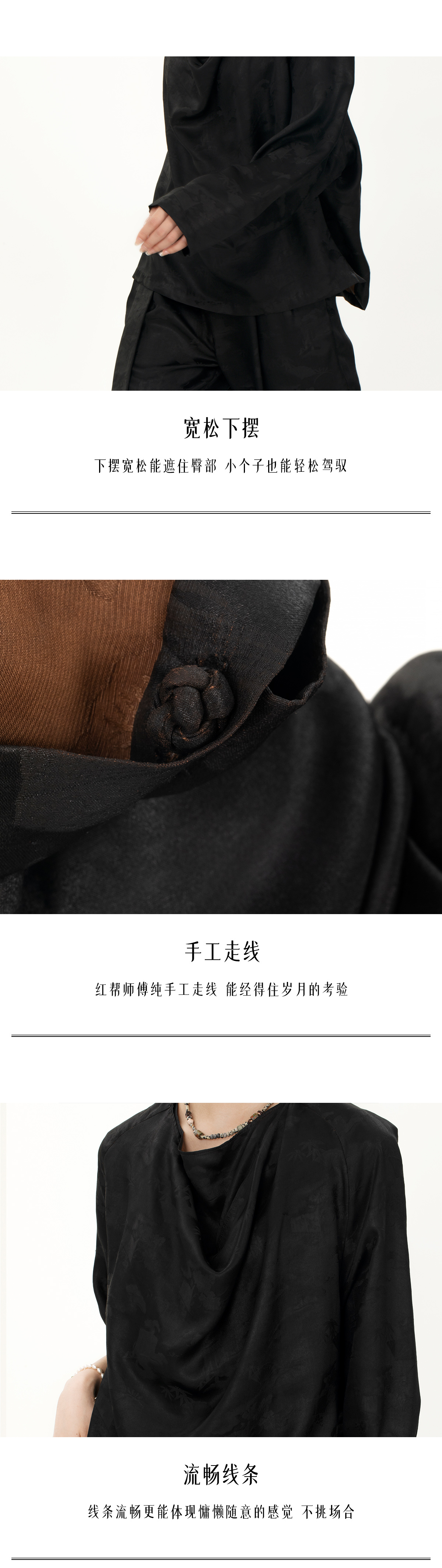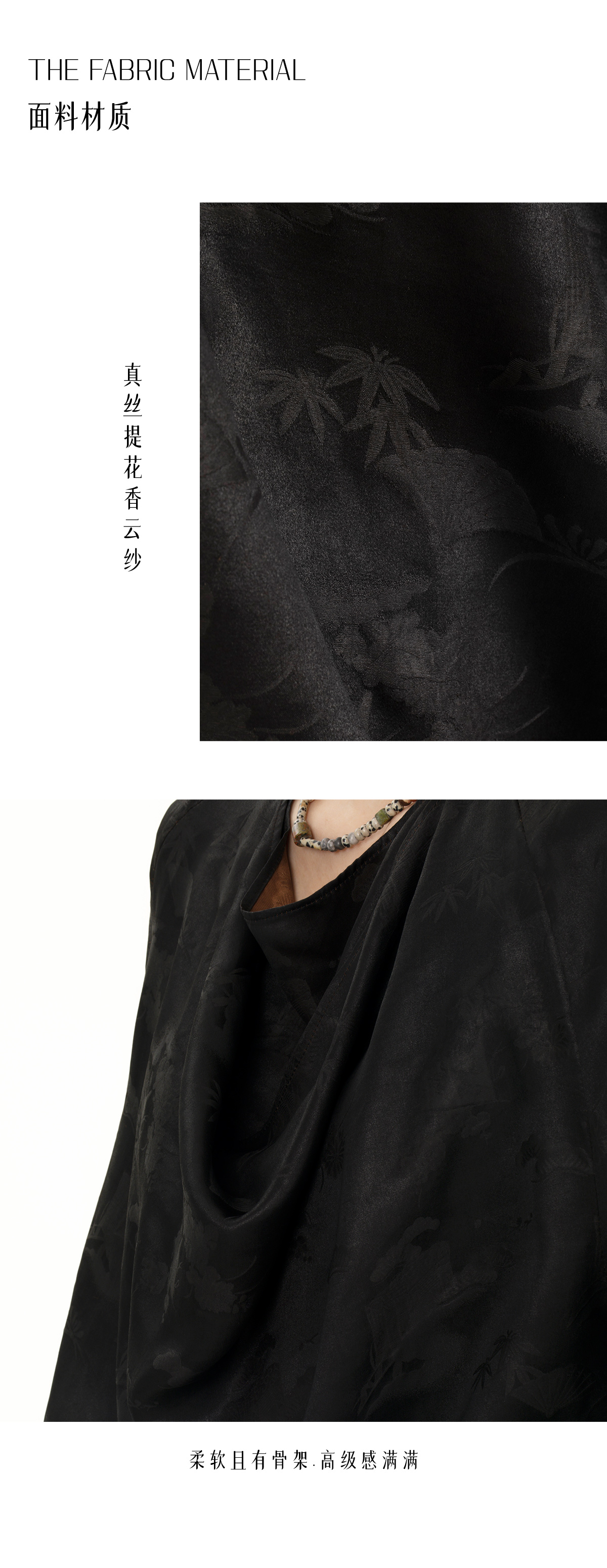 盛唐牡丹 |真丝压花圆领女上衣-黑色