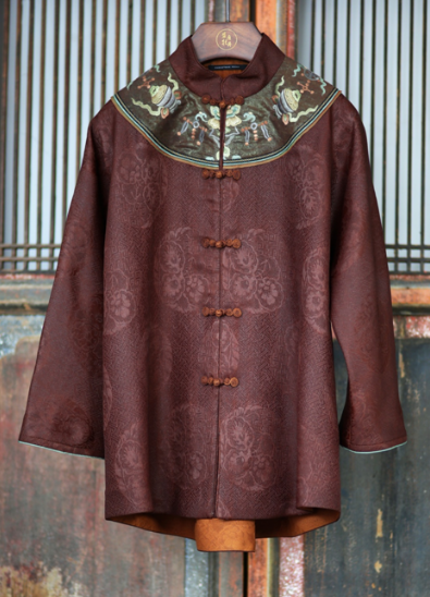 盛唐牡丹 |真丝提花梅兰竹菊偏襟上衣