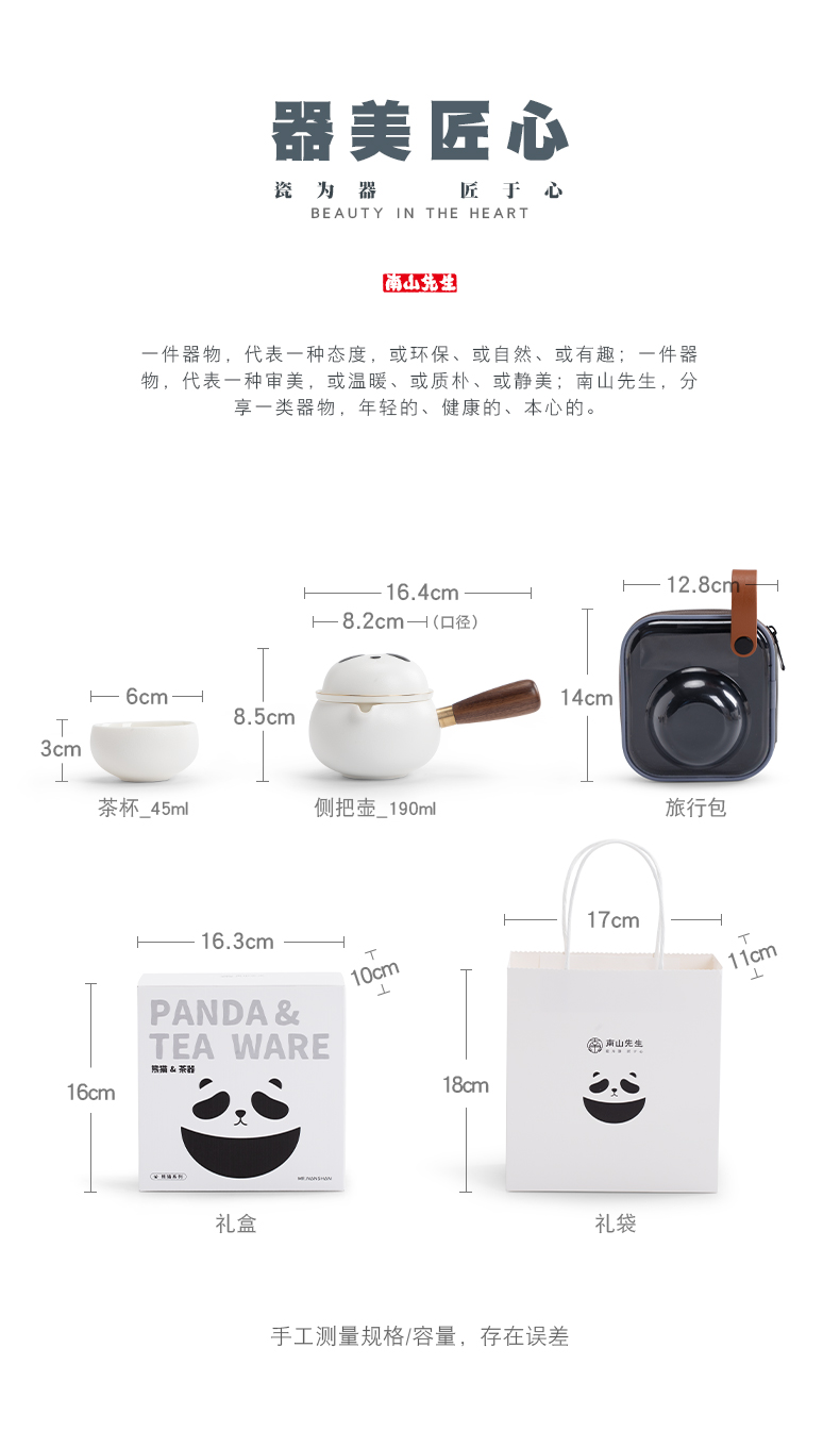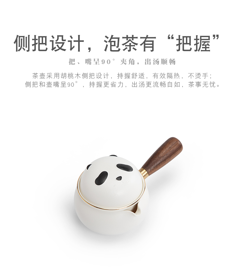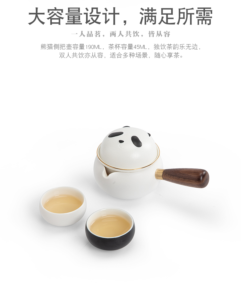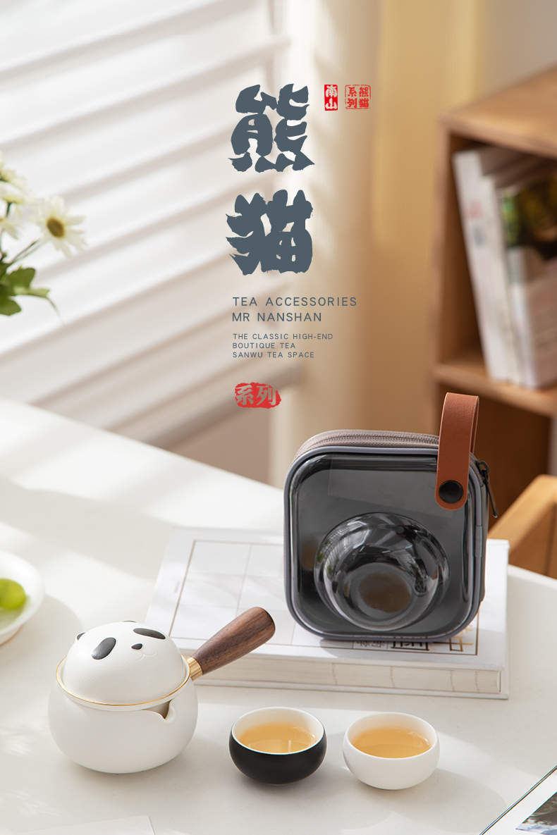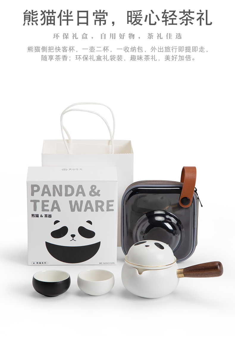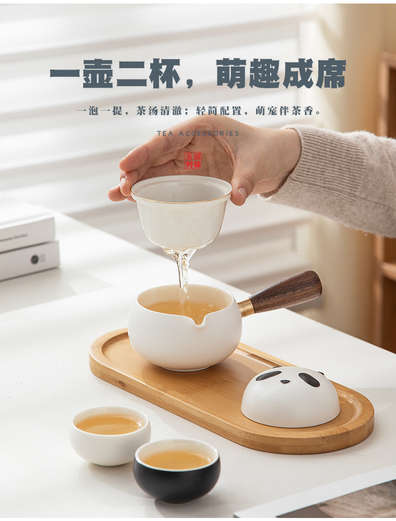 【积分】熊猫侧把旅行茶具快客杯一壶二杯便携茶具