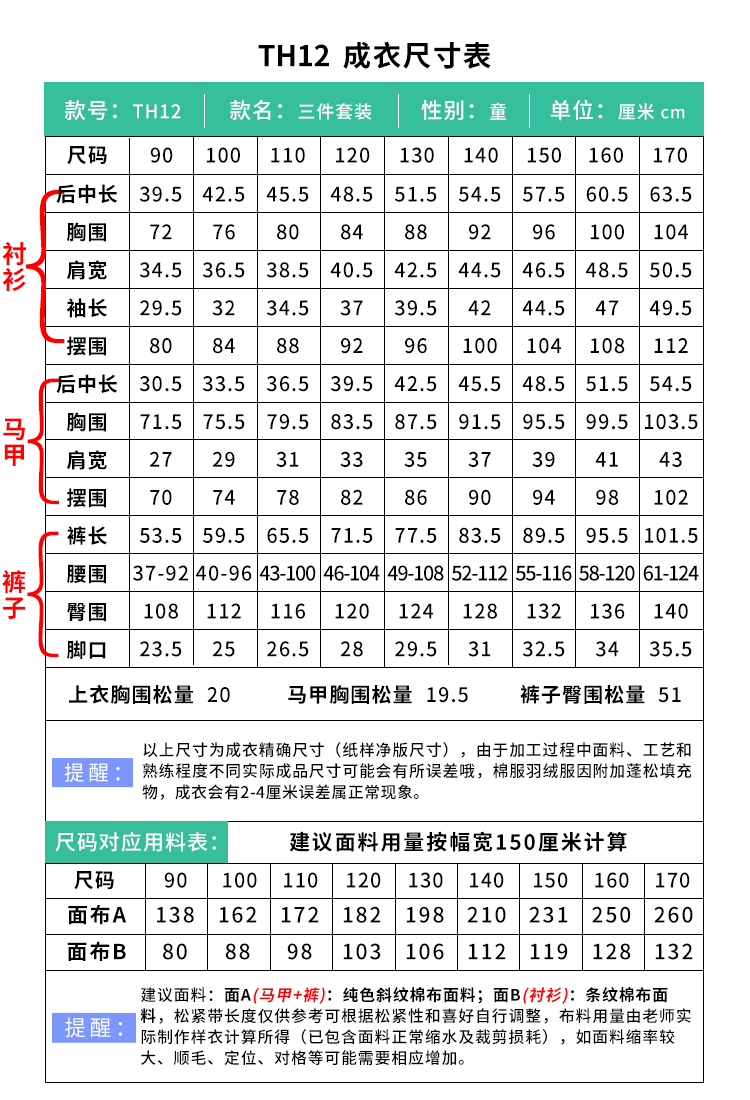 裁缝学苑TH12男童新款翻领衬衫马甲灯笼裤套装纸样儿童样板
