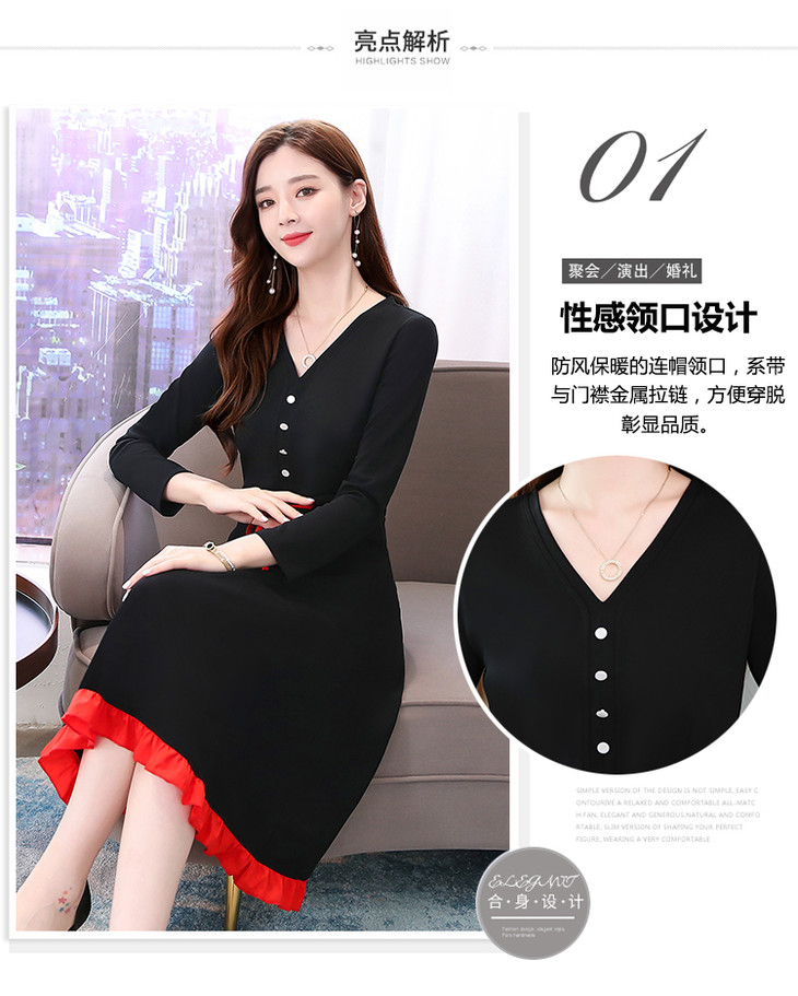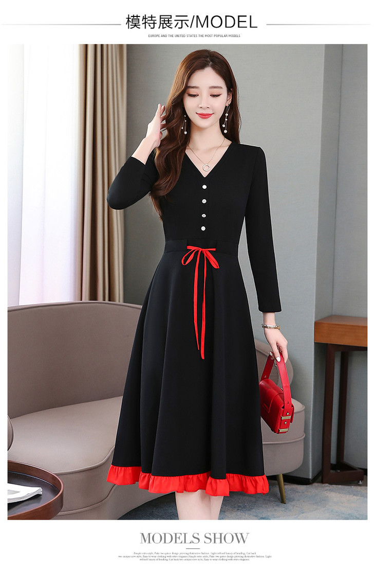 【服饰鞋包】秋冬气质系带收腰显瘦波点拼接长袖连衣裙女流行中长裙子