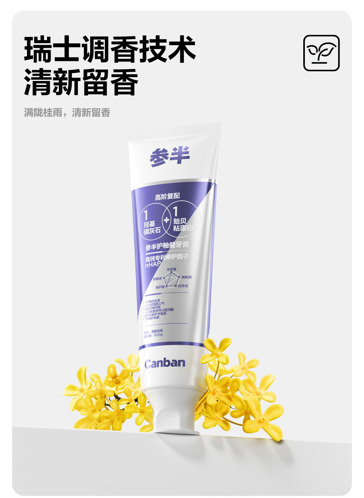参半旗下产品已覆盖牙膏、漱口水、口腔爆珠、口腔喷雾等多个类目,为用户提供了精细化的口腔护理解决方案。