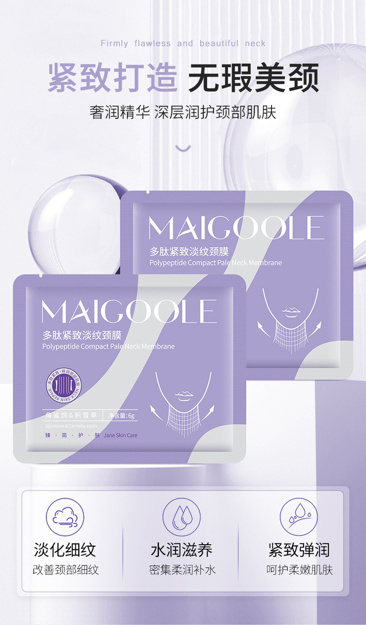 【玫黛琳多肽紧致淡纹颈膜】植萃精华紧致淡纹淡化细纹保湿滋润颈膜6g×5片/盒