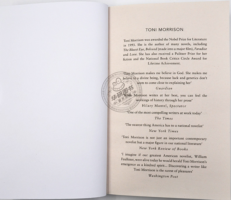 “莫里森的风格让读者入迷……她的行文调动了多重感官,常常富有韵律,甚至如同咏唱,让人想起福克纳和艾米丽·迪金森。”——《泰晤士报文学增刊》