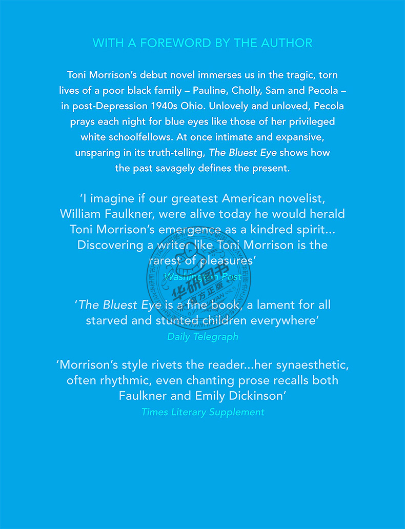 “《最蓝的眼睛》是为世上一切饥饿与孱弱的孩子谱写的一曲挽歌。”——《每日电讯》