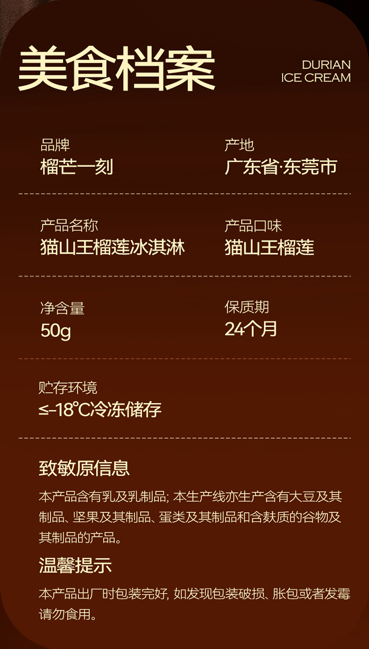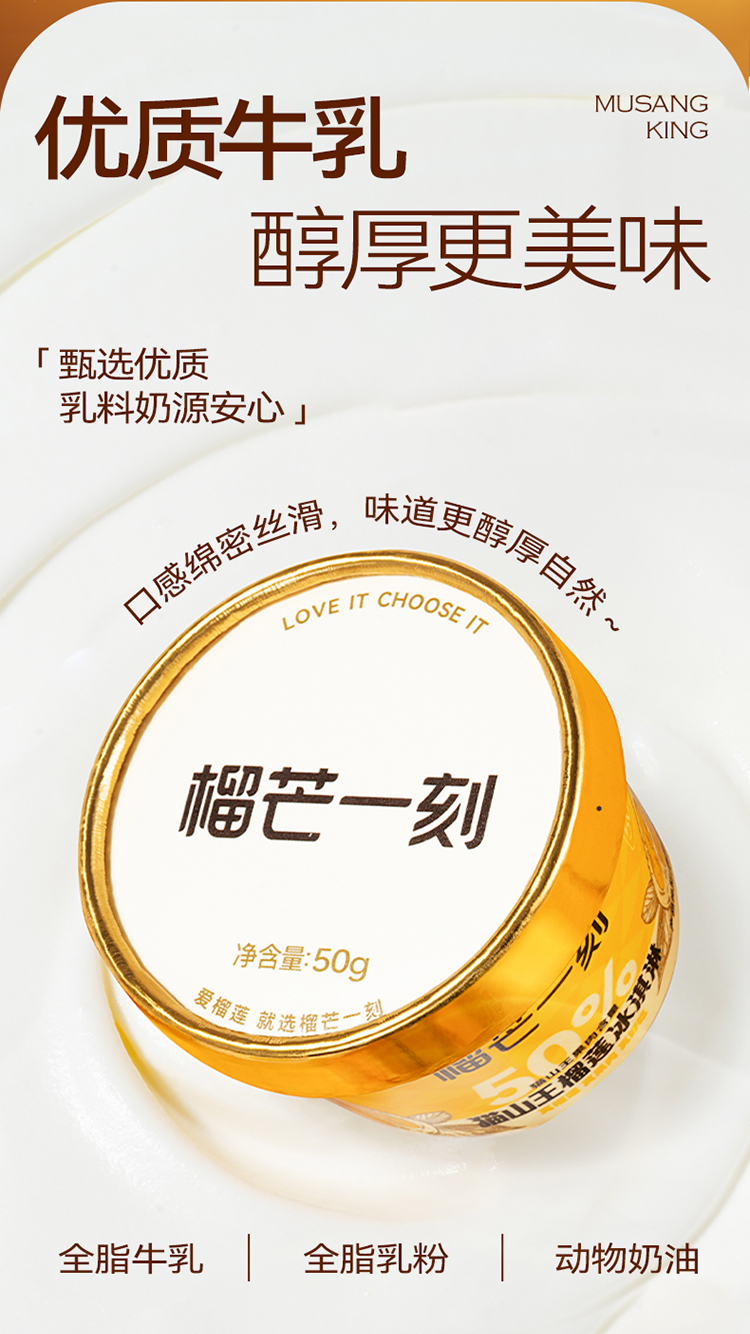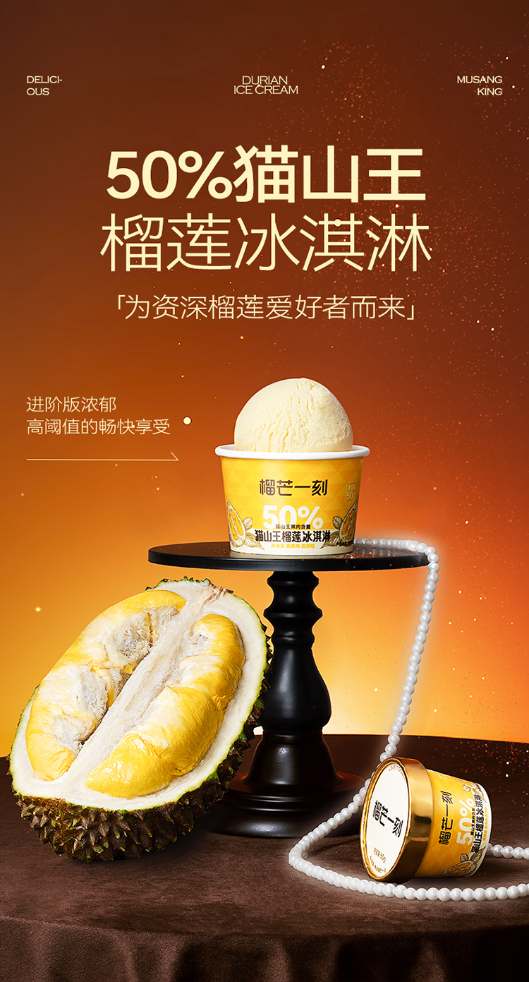 【榴芒一刻】50%猫山王雪糕50g/杯 真榴莲真果肉 绵密香甜