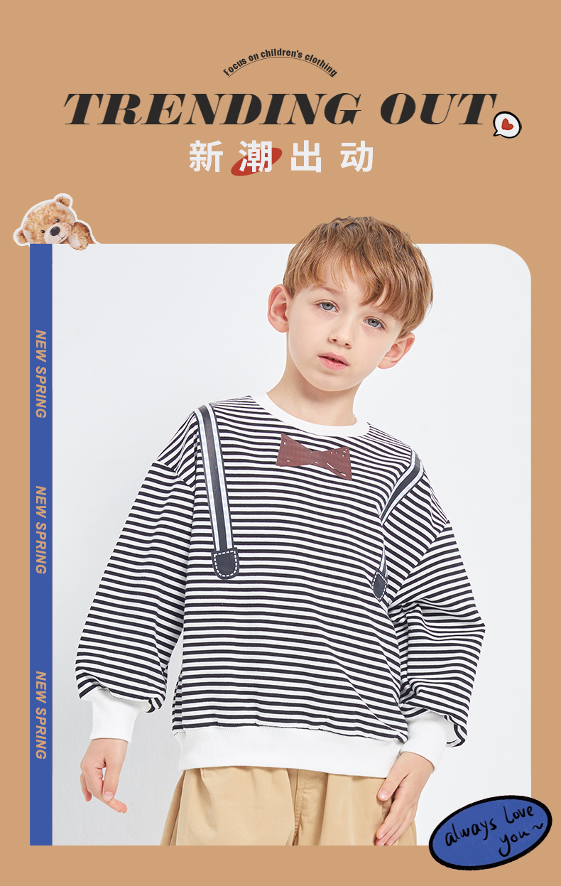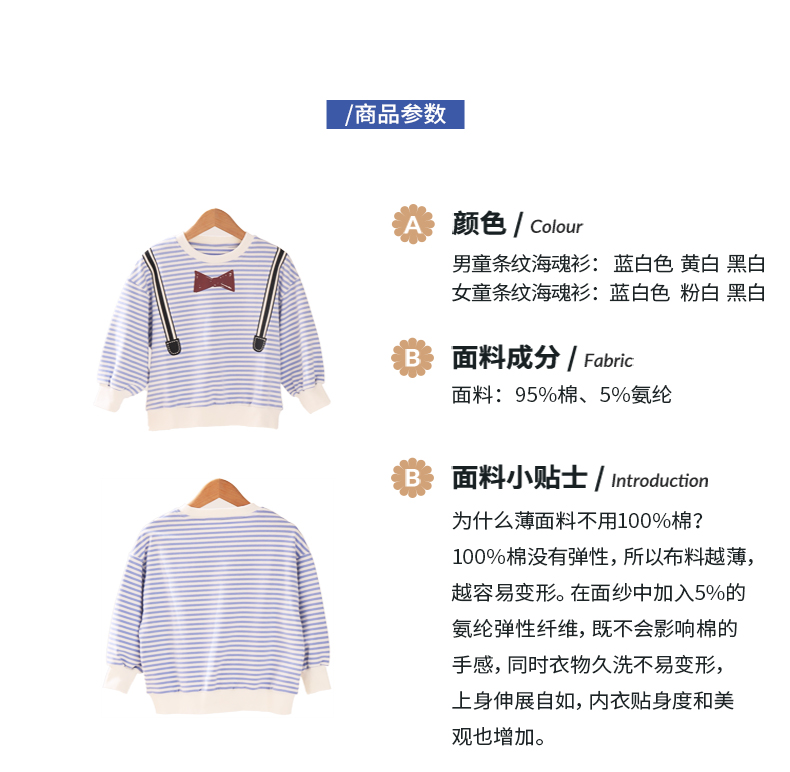 【早春特价】龙之涵 海魂衫卫衣 2021中大童新款套头上衣 经典百搭条纹卫衣 婴幼儿A类标准