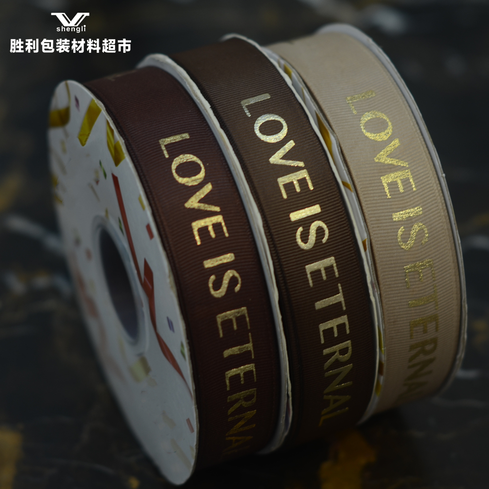 2.5CM烫金罗纹带-LOVE IS ETERNAL(长约50YDS)