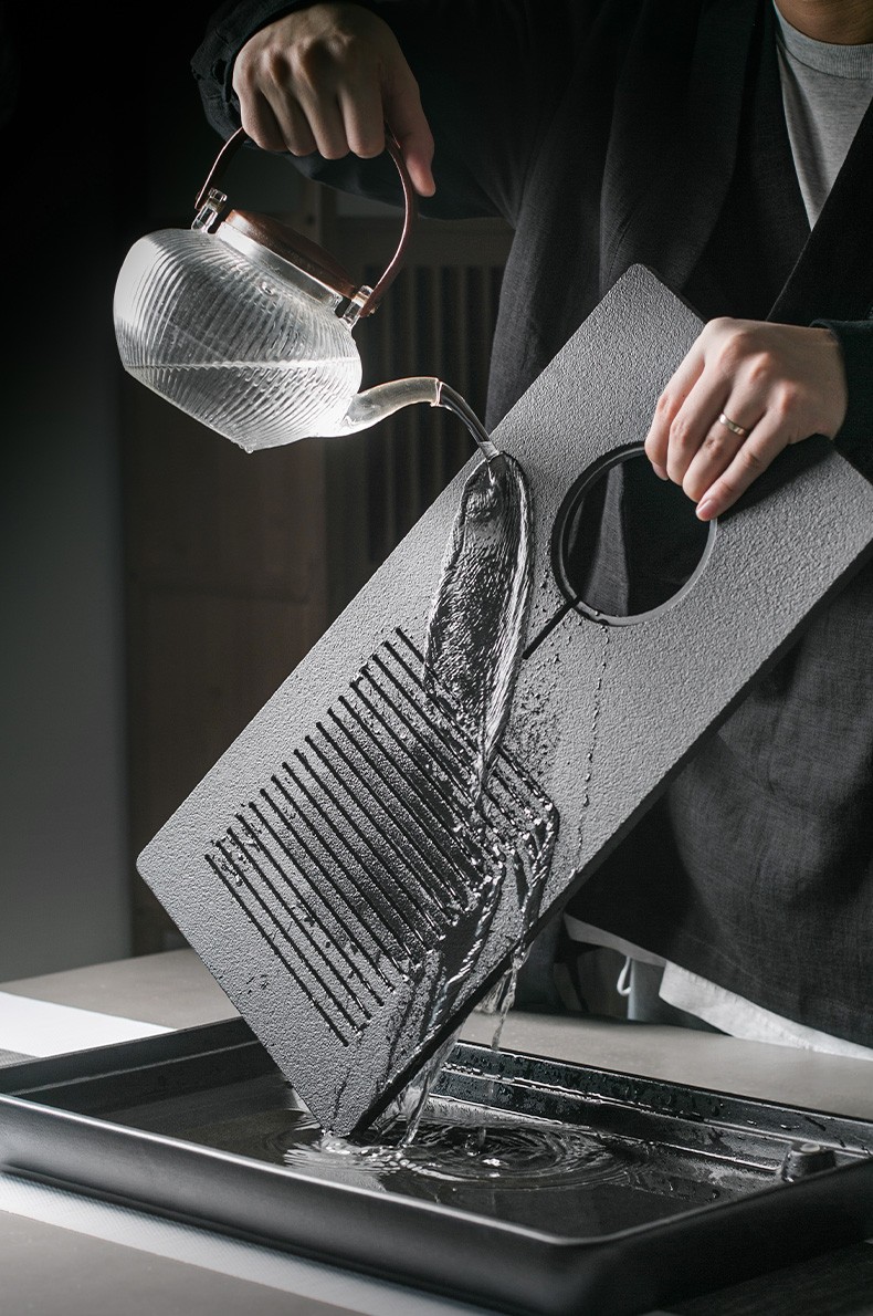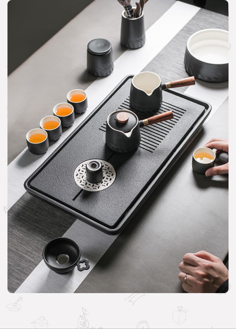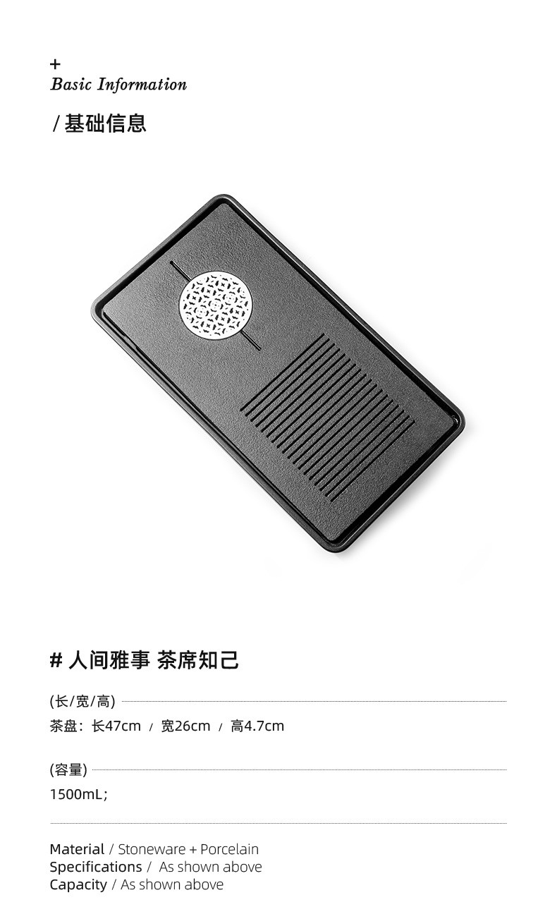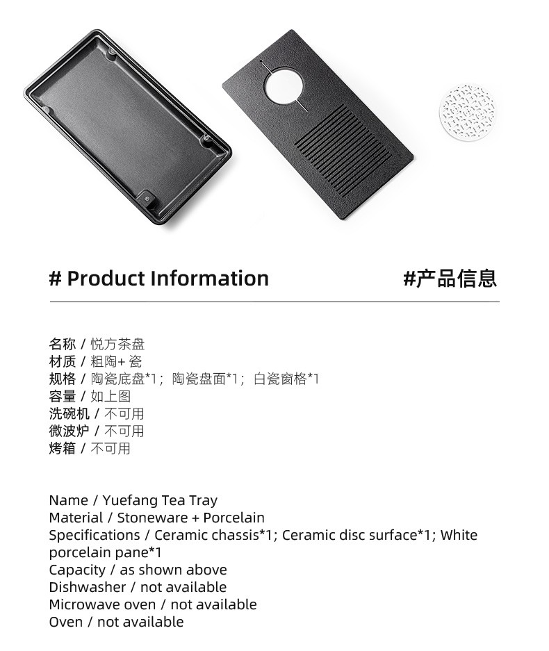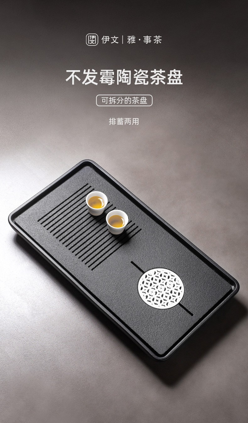 陶瓷干泡茶盘家用储水茶托盘小型日式排水式茶台陶瓷茶海简约 悦方茶盘VN3a
