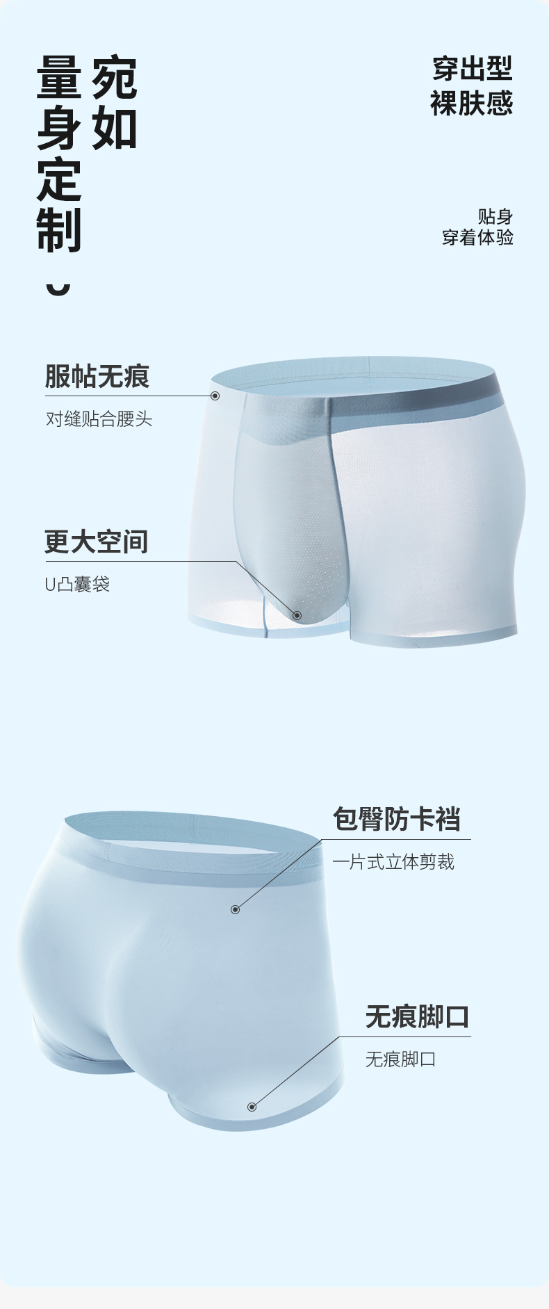 雅黛丽内裤男生冰丝轻薄透气平角裤无痕贴合抑菌底裆短裤头四角裤
