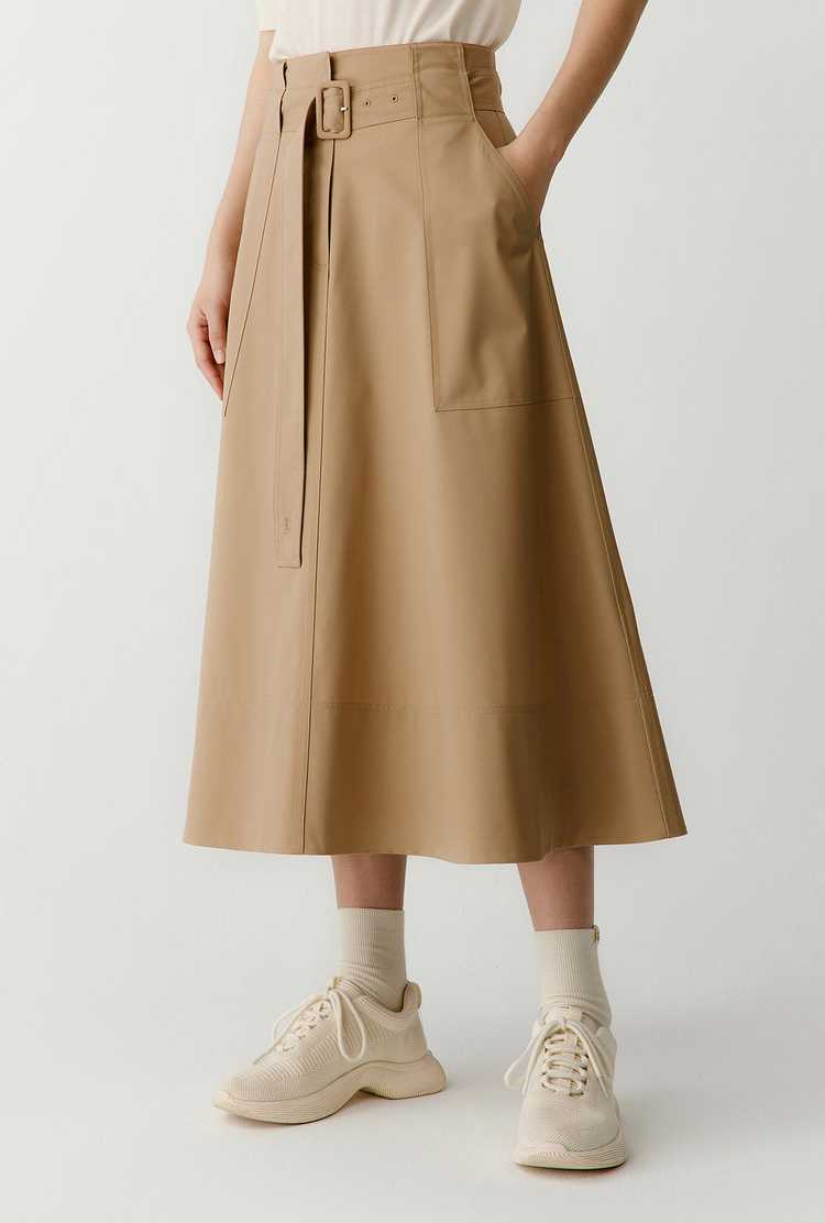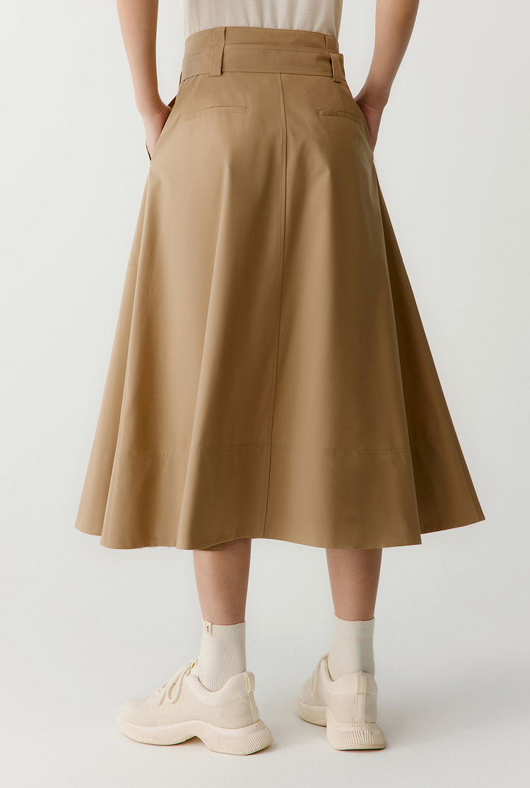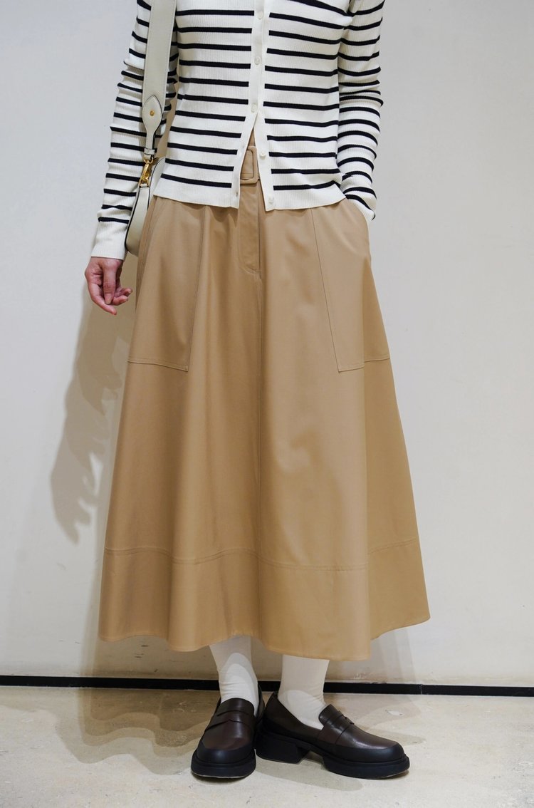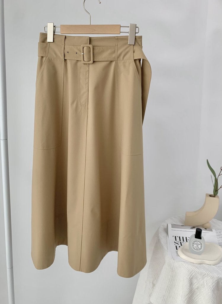 双侧L型走线装饰口袋。宽松的A字版型,包容身材,遮肉显瘦,高腰修饰身材比例,过膝裙长含蓄优雅。