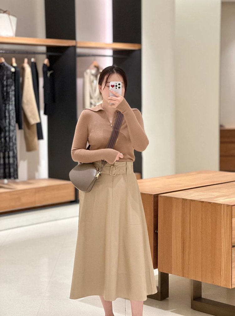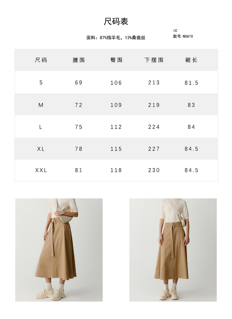 长度在膝下,中长是半裙中完美的长度,显高、瘦, 加厚的面料兼具保暖属性,包容不挑人!
