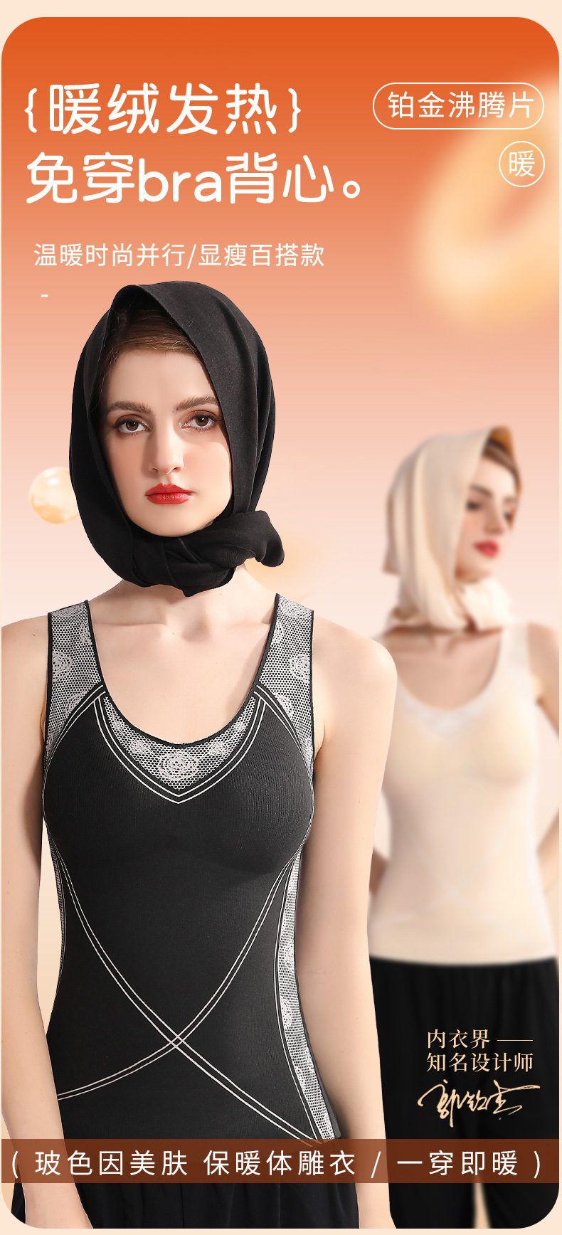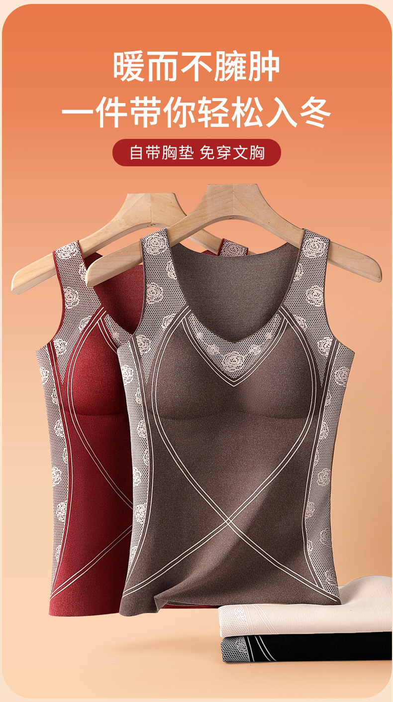 【热感美体❗️蚕丝美肤润养背心】蓄热锁温,自带胸垫,免穿内衣文胸垫,超舒服❗️新款秋冬季7A抑菌发热暖腹束腰无痕内穿打底女绵羊毛保暖