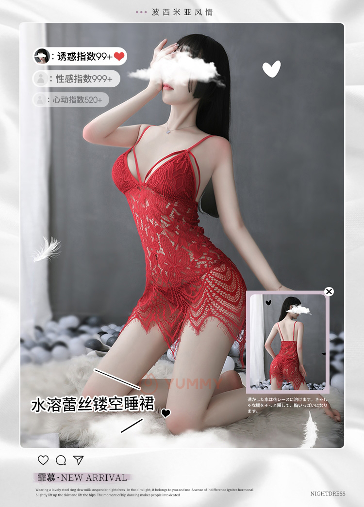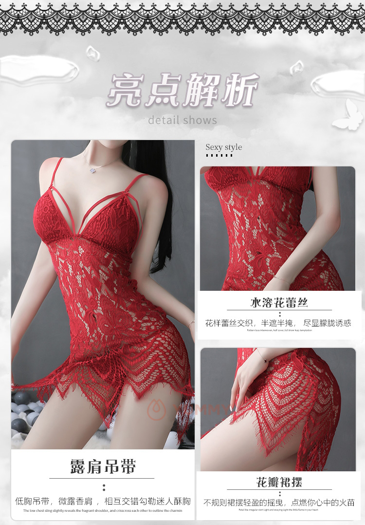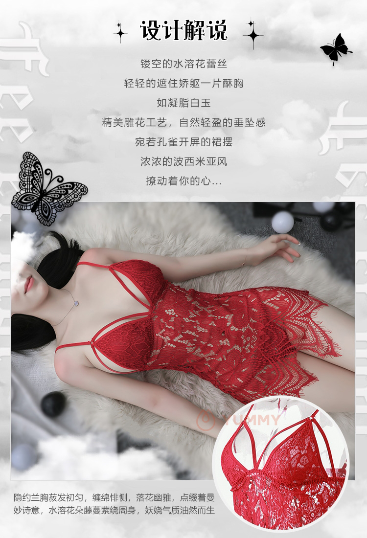 霏慕情趣内衣女装透视诱惑水溶蕾丝波西米亚镂空性感睡裙
