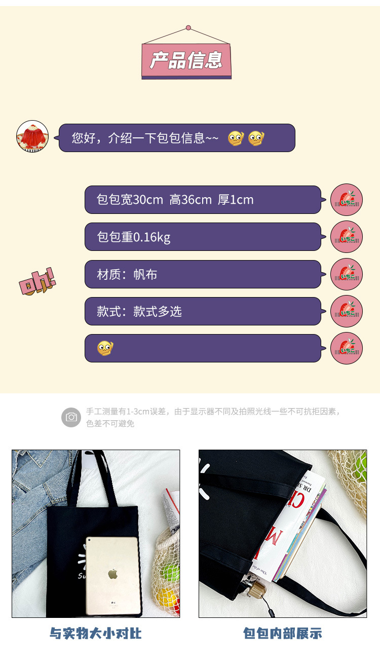 【服饰鞋包】新款印花帆布手提托特女包大容量校园风学生补习包软妹购物单肩包