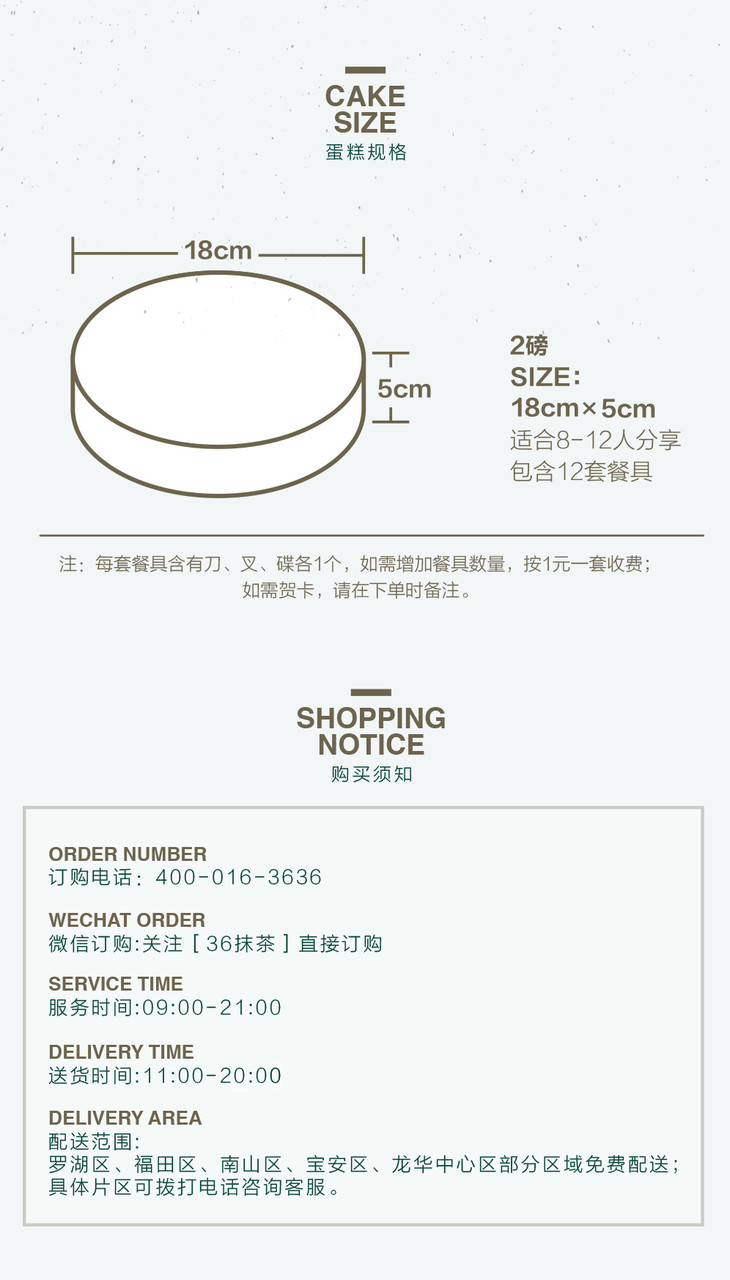 我们目前拥有36MATCHART和36cake两个品牌,主营抹茶甜品与新鲜蛋糕,深受数百万抹茶控和甜品控的拥趸。好吃安心,奶油只选法国铁塔。全城3小时免 费速达。客服热线400-016-3636