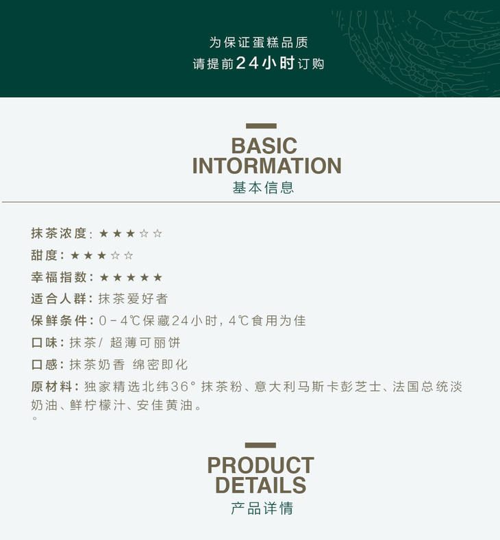36cake 明星抹茶手作千层 【全国顺丰快递包邮】