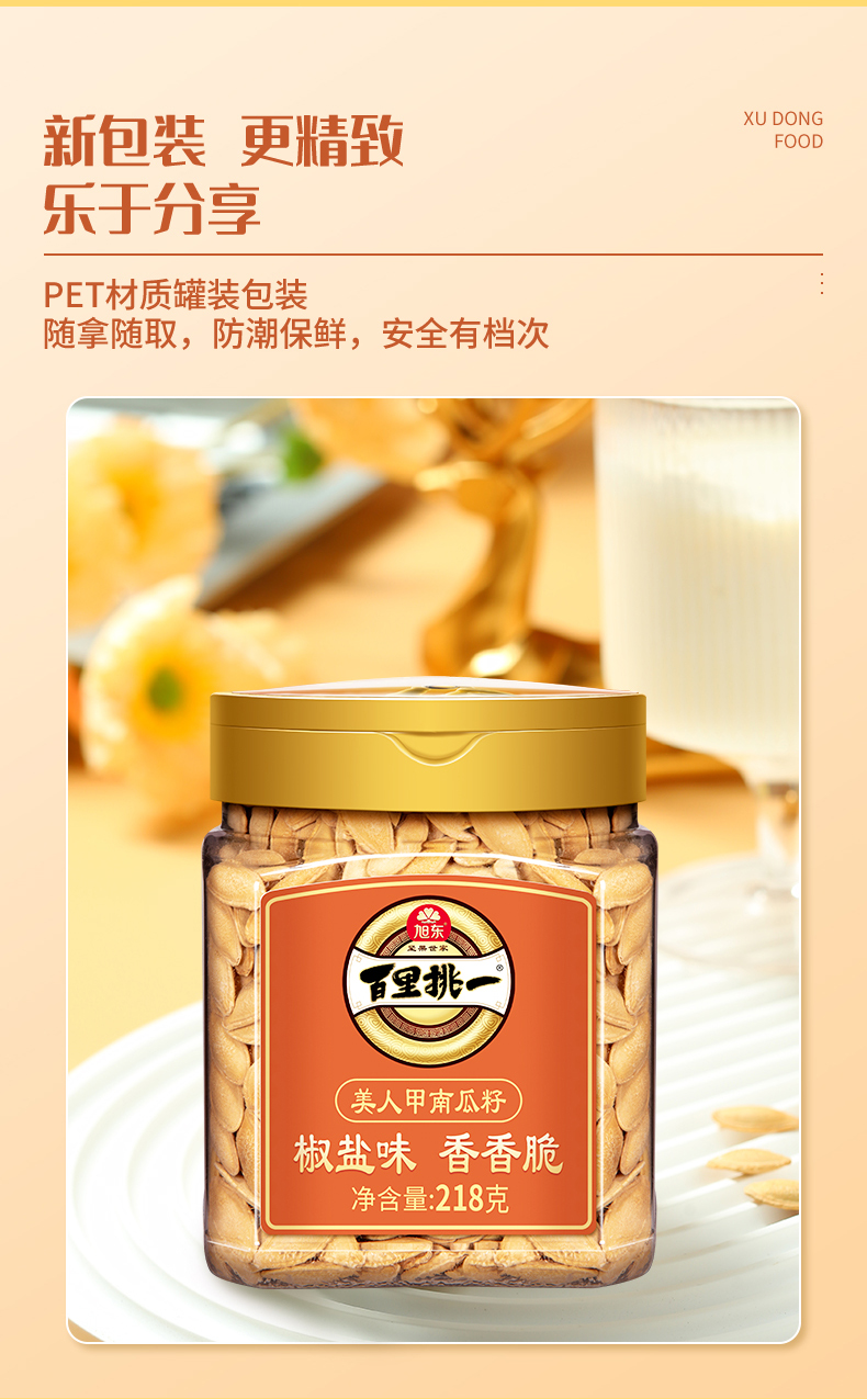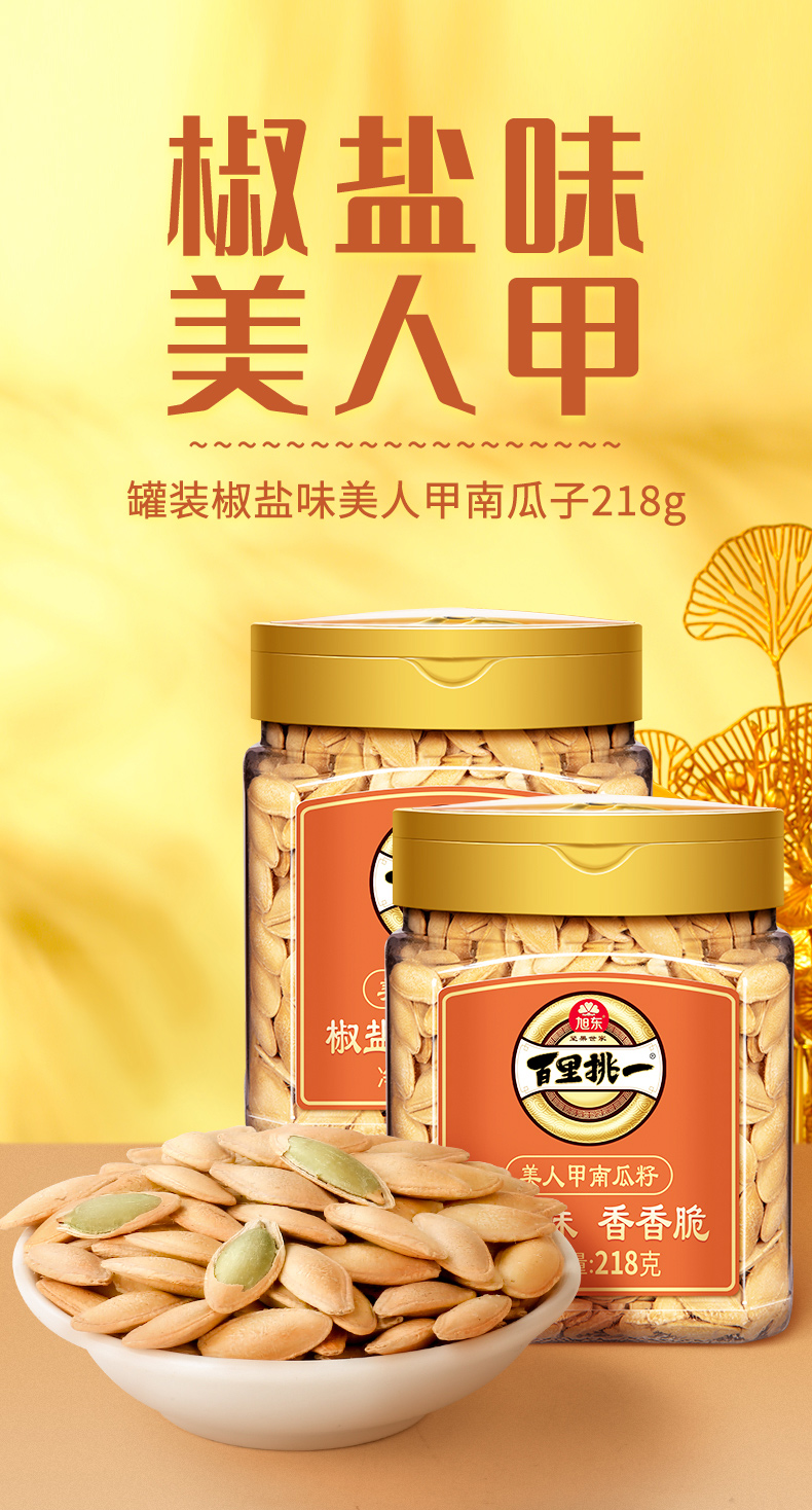 【218g】罐装椒盐味南瓜子旭东百里挑一新货美人甲炒货南瓜籽休闲零食