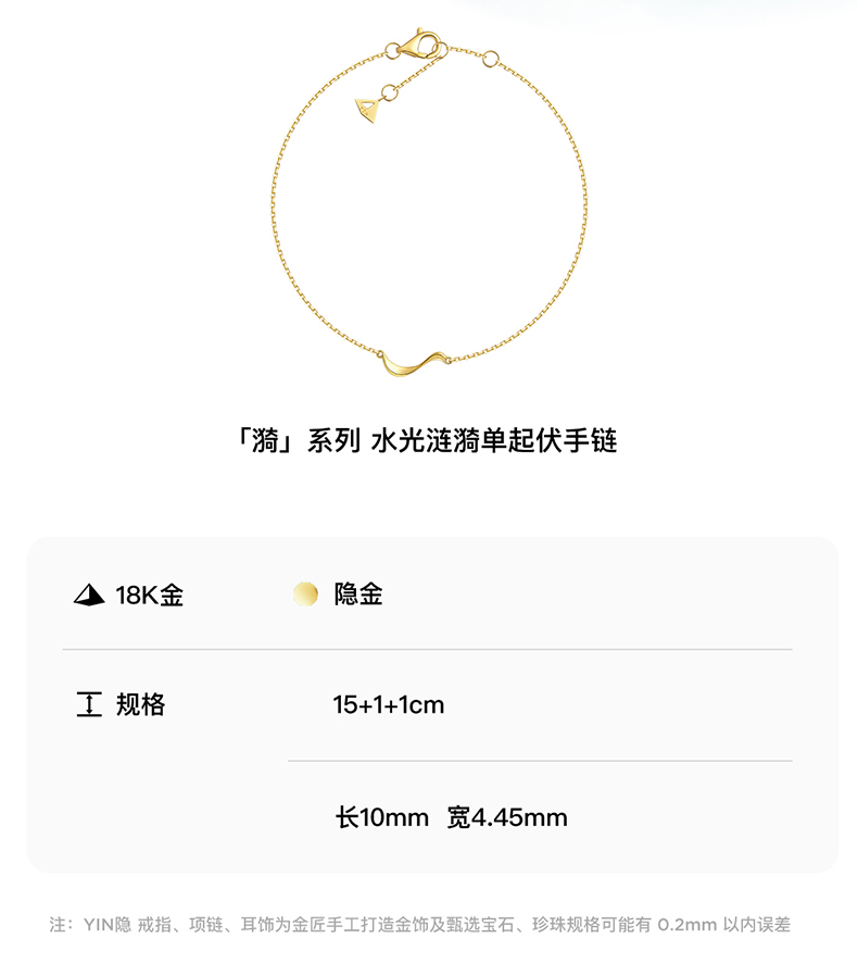 「漪」系列 水光涟漪单起伏 PADI海洋潜水款18K真金手链