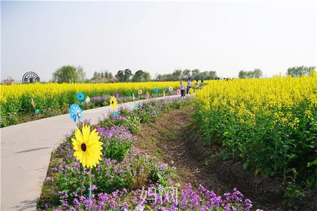 放眼望去,油菜花竟相怒放,铺天盖地,满眼金色,蔚为壮观。