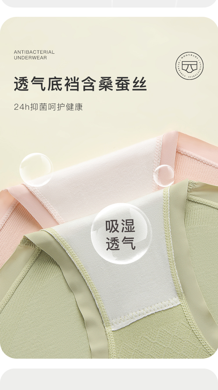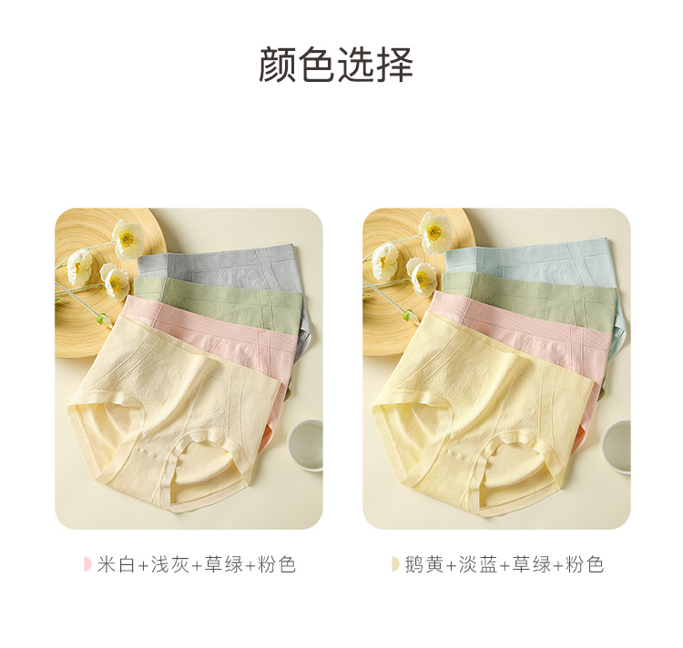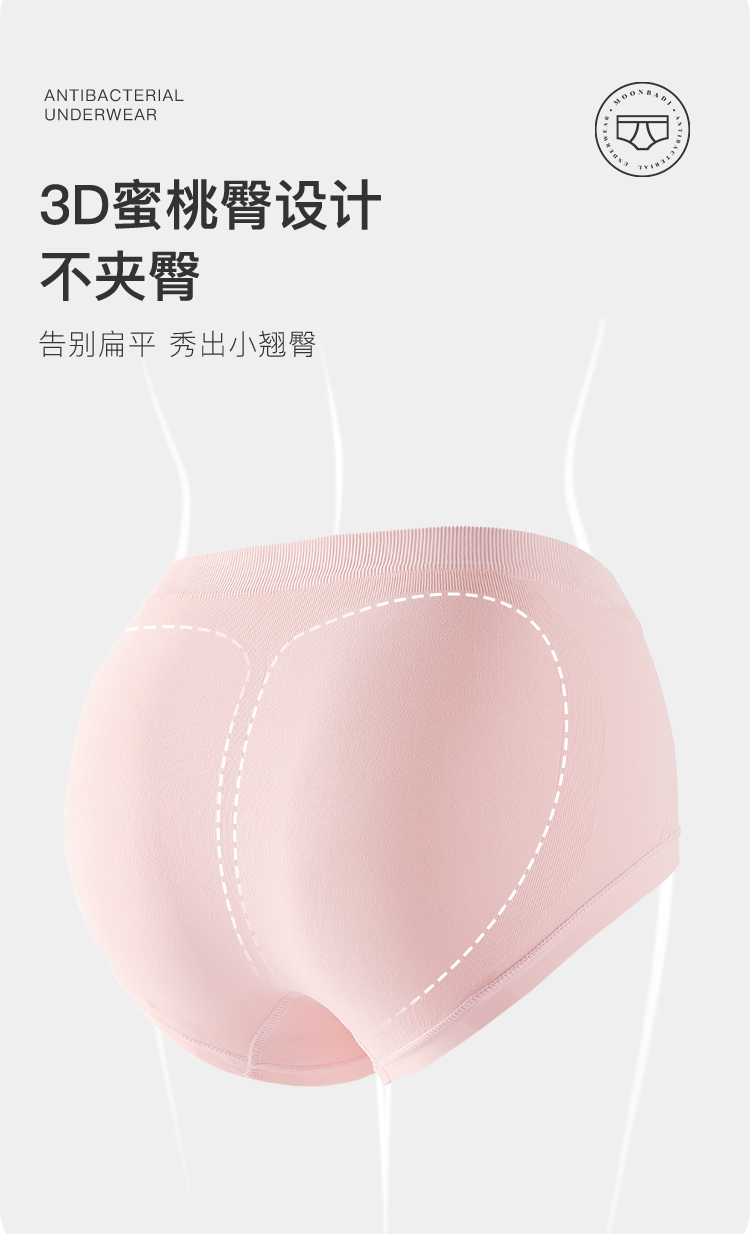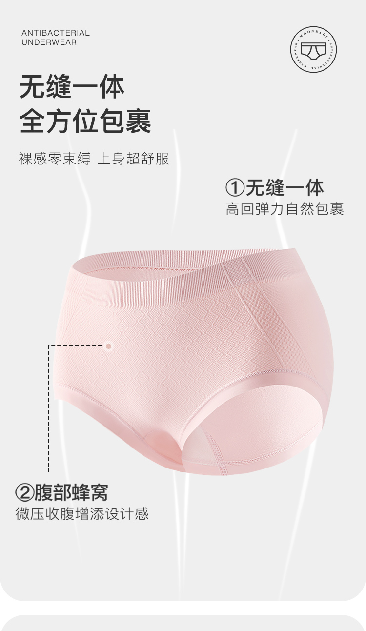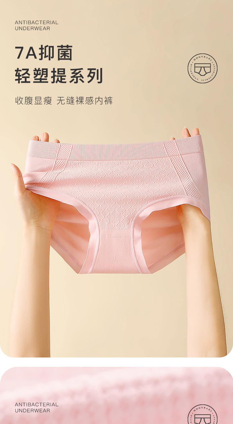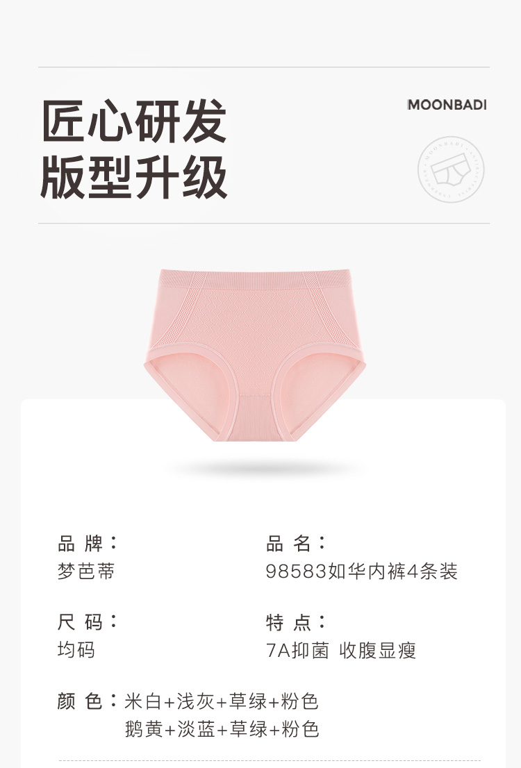 7A抑菌裆内裤女裸感贴身微压收腹蜜桃臀针织无缝内裤如华内裤4条装