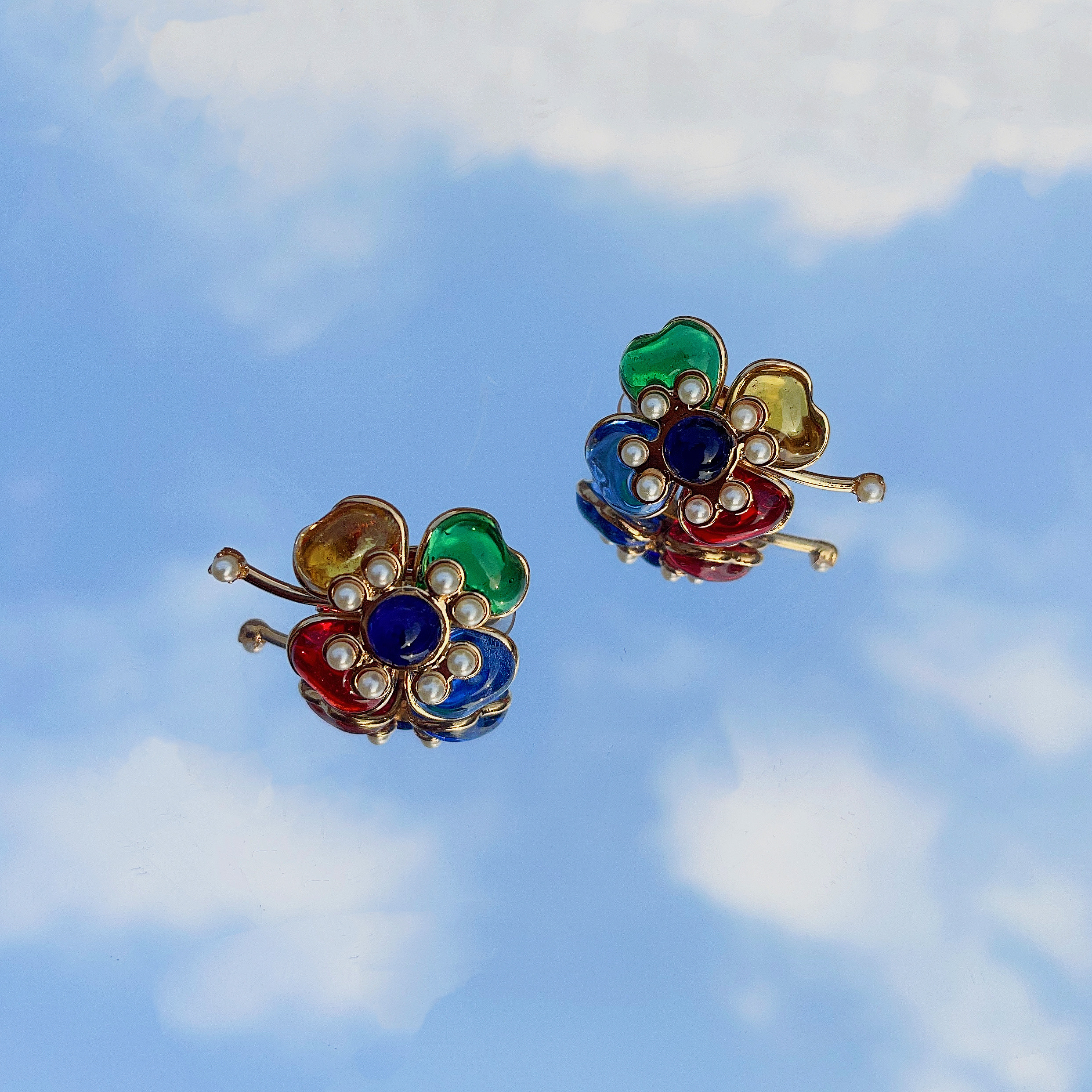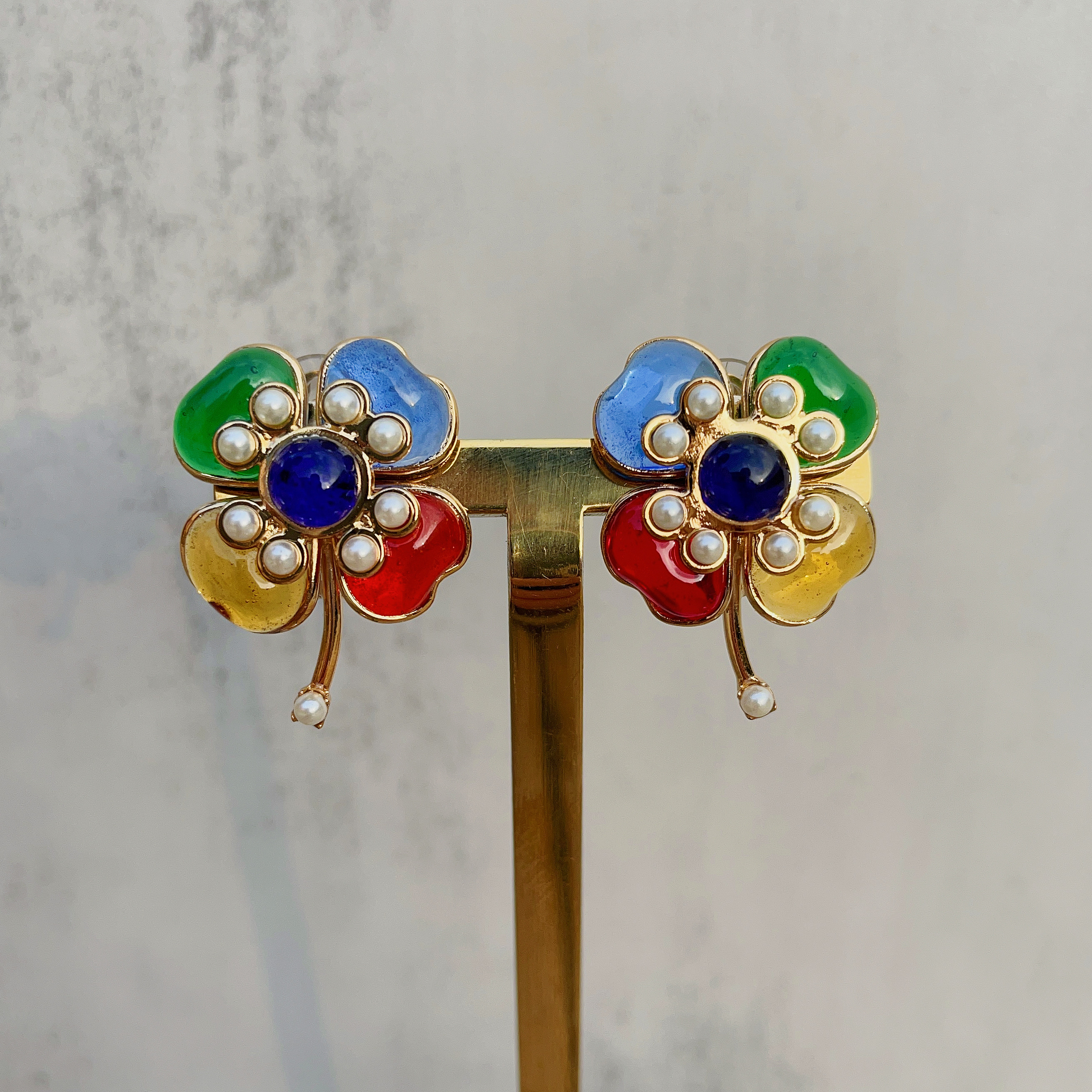 订购6个月到|Gripoix Paris-Clover Earrings-彩色琉璃 四叶草 耳环[法国设计师]