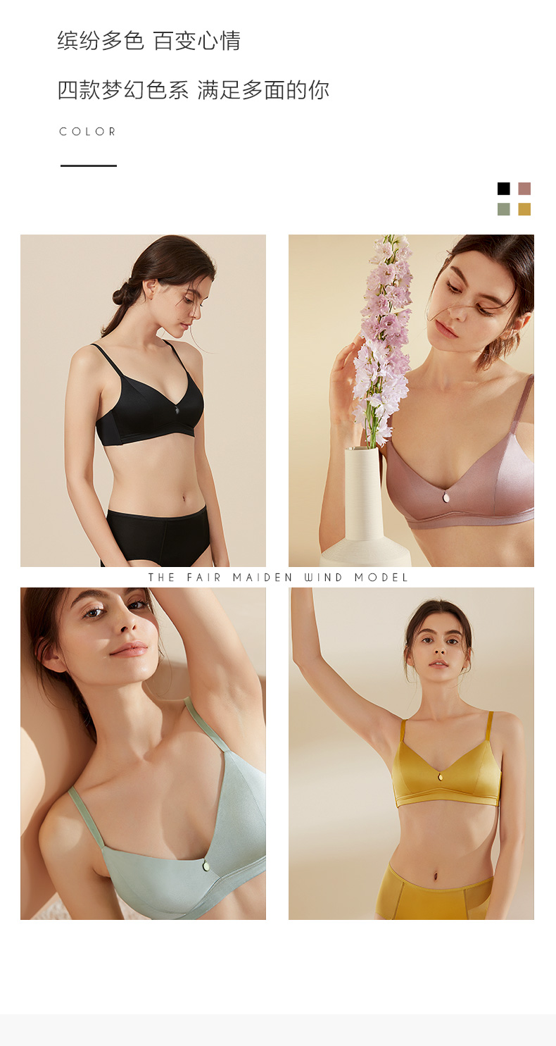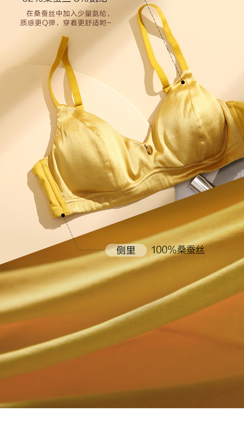 金三塔无钢圈文胸双面真丝缎面全罩杯光面无束缚亲肤内衣 NZFAA301