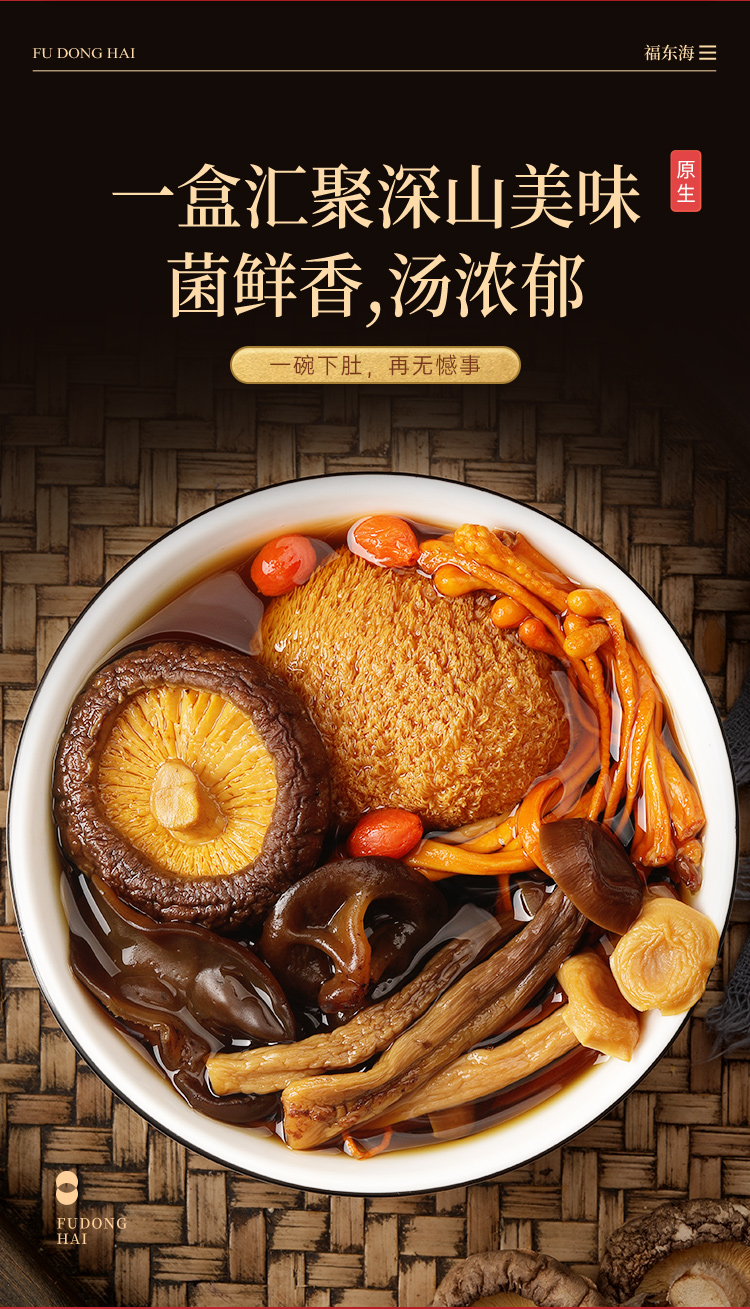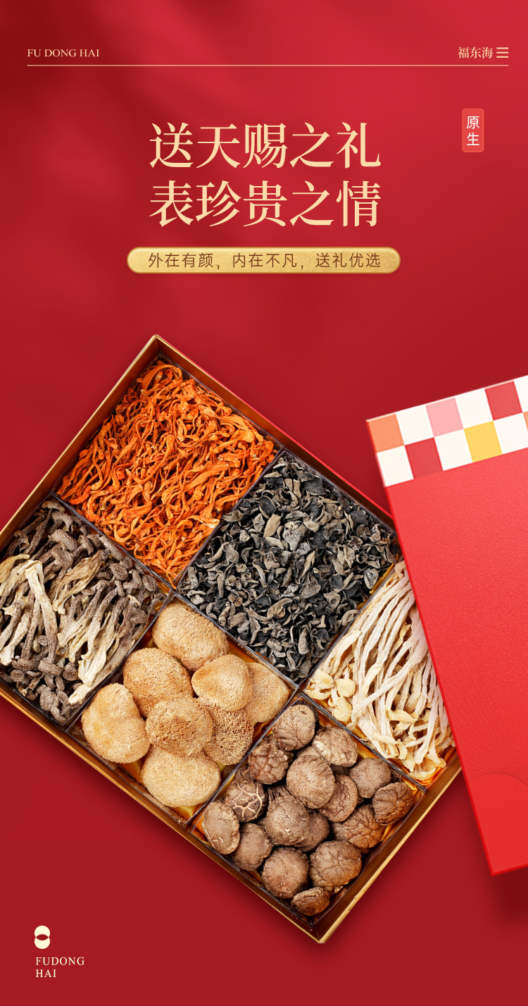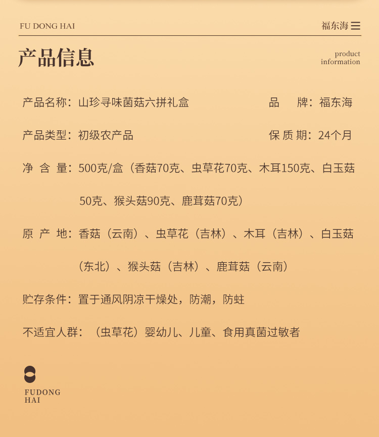 福东海 山珍寻味菌菇六拼礼盒500克 火锅煲汤料 南北干货特产 鹿茸菇虫草花猴头菇滋补品 年货送礼
