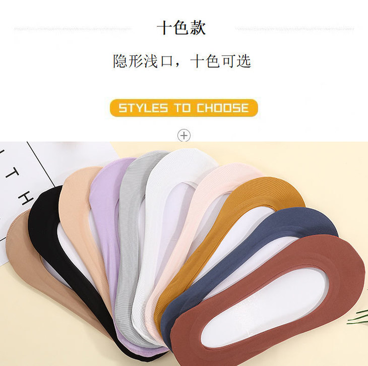 【5/10双】船袜女超薄隐形袜糖果冰丝袜硅胶防滑防臭透气舒适
