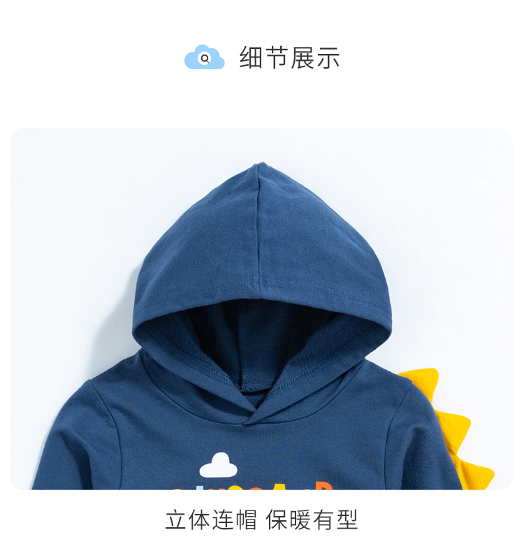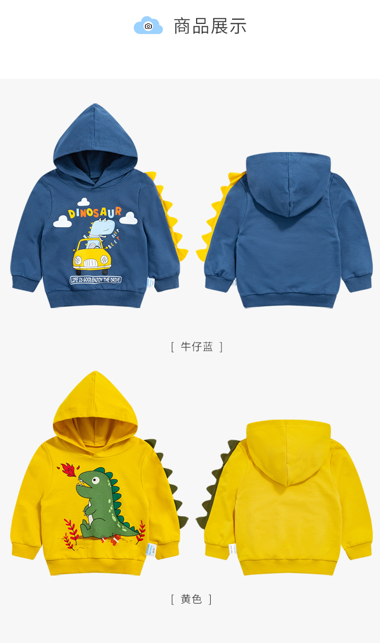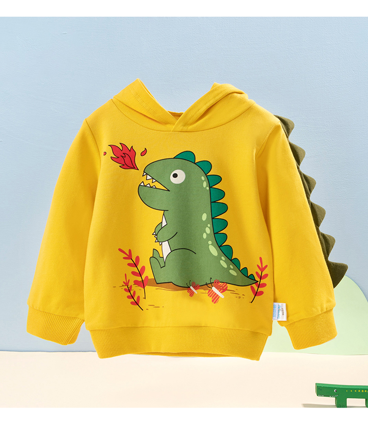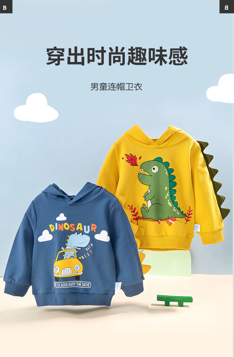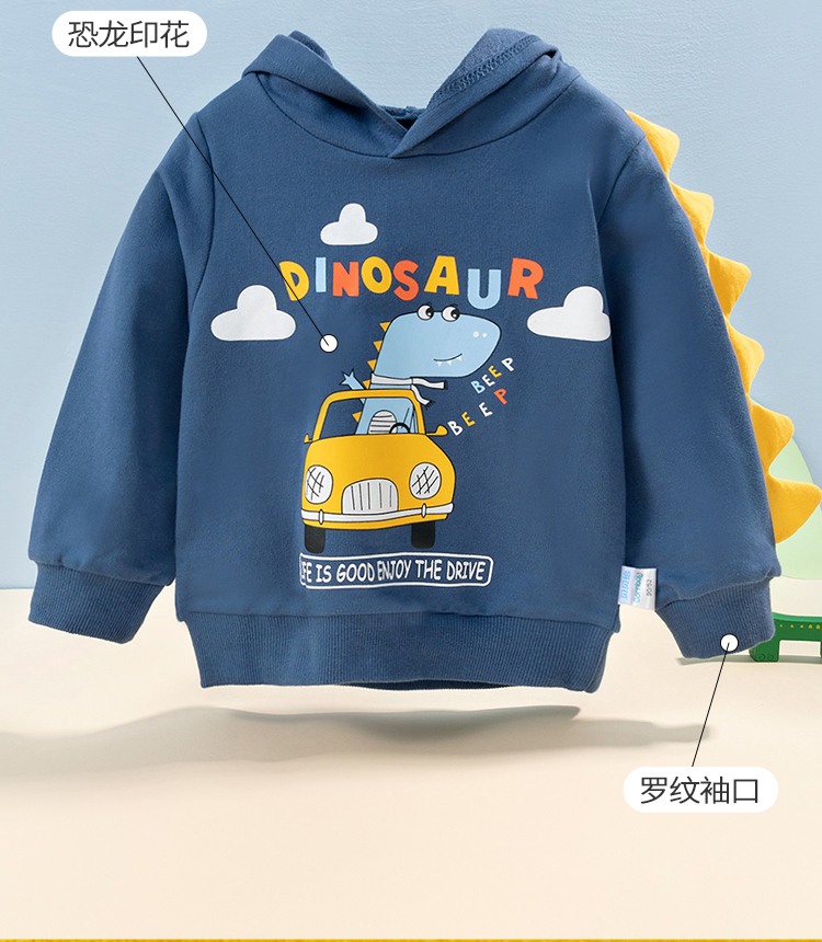 贝贝怡秋季新品男童儿童休闲连帽套头卫衣小恐龙卡通时尚上衣223S3104
