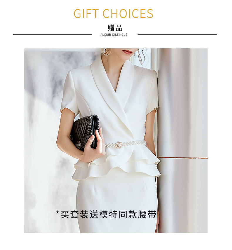 AD高端职业装气质女神范时尚白色短袖西装套装夏季小香风名媛正装