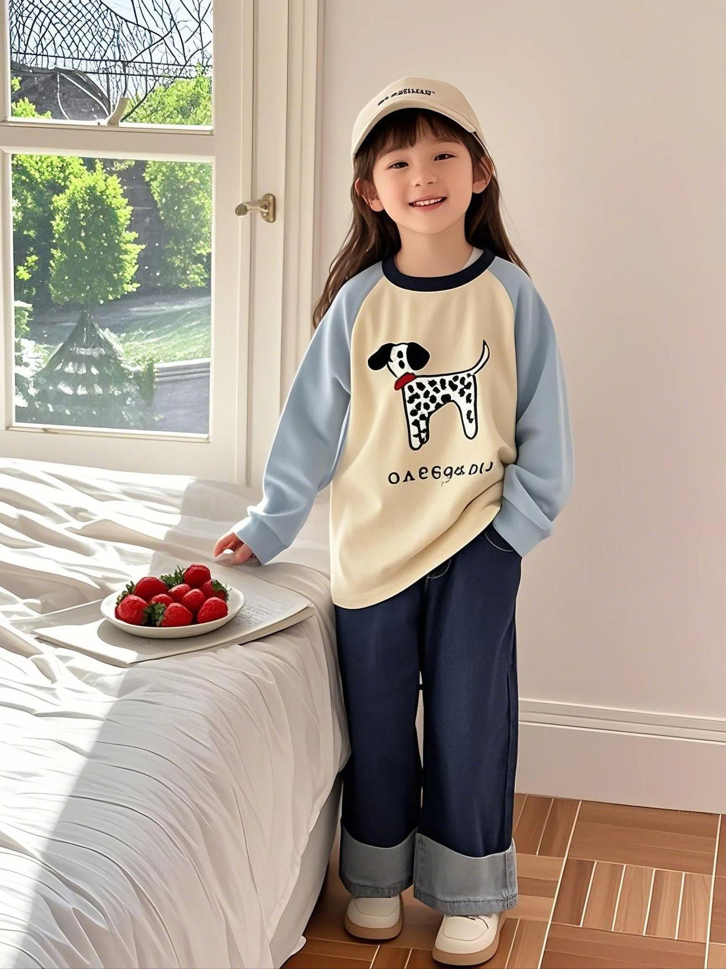 【29.9元2件起】专一儿童纯棉打底衫韩版插肩款男女童T恤休闲时尚童装90-170