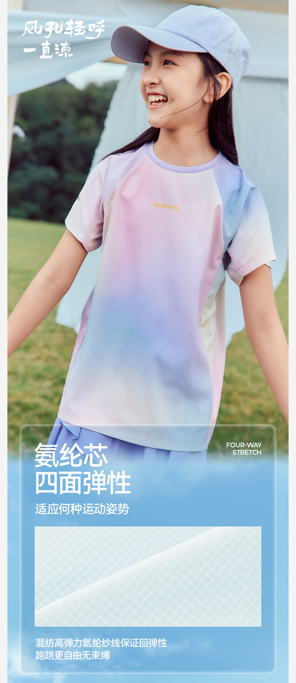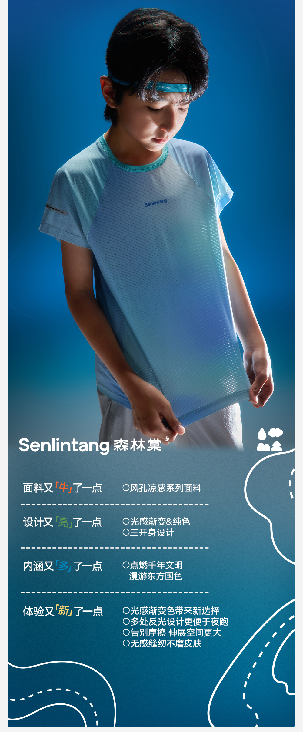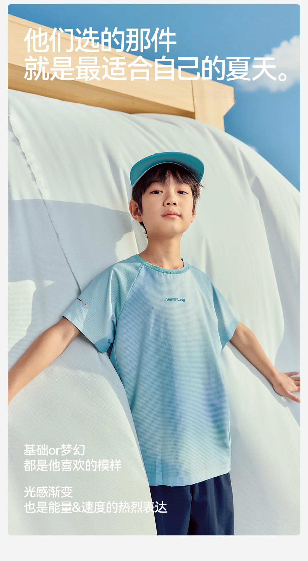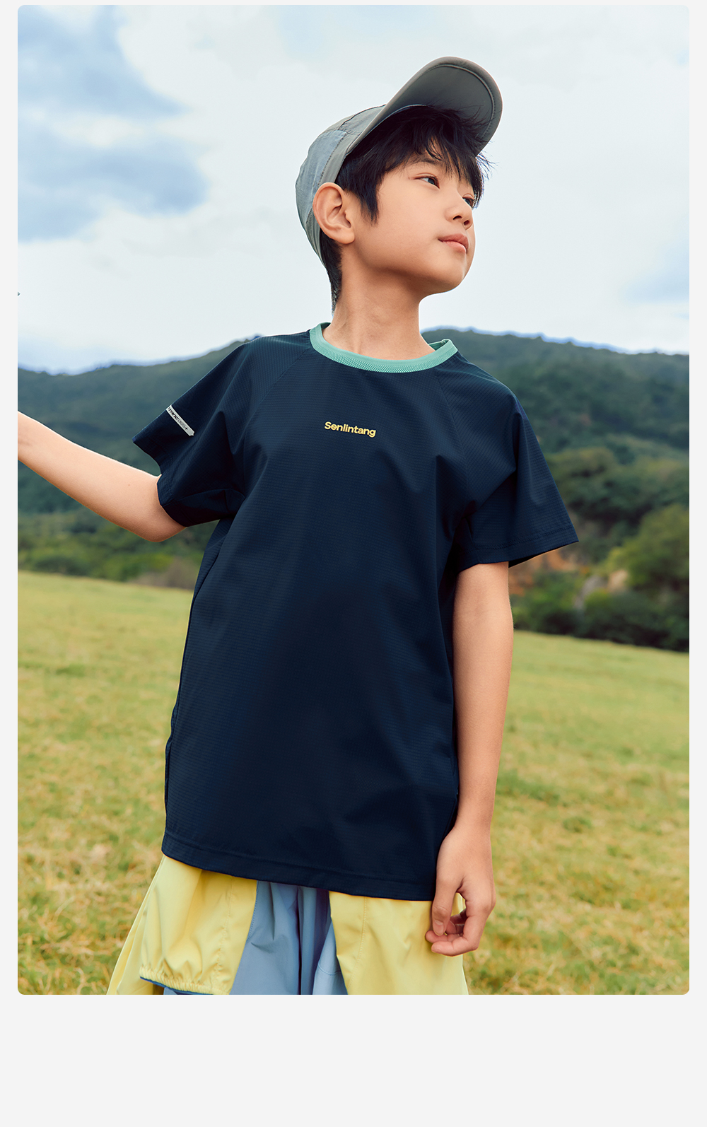 【插肩袖运动凉感T】森林棠26夏款风孔散热清凉透气儿童反光运动上衣40162024