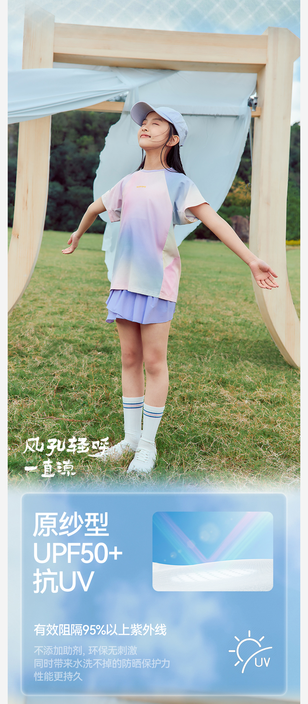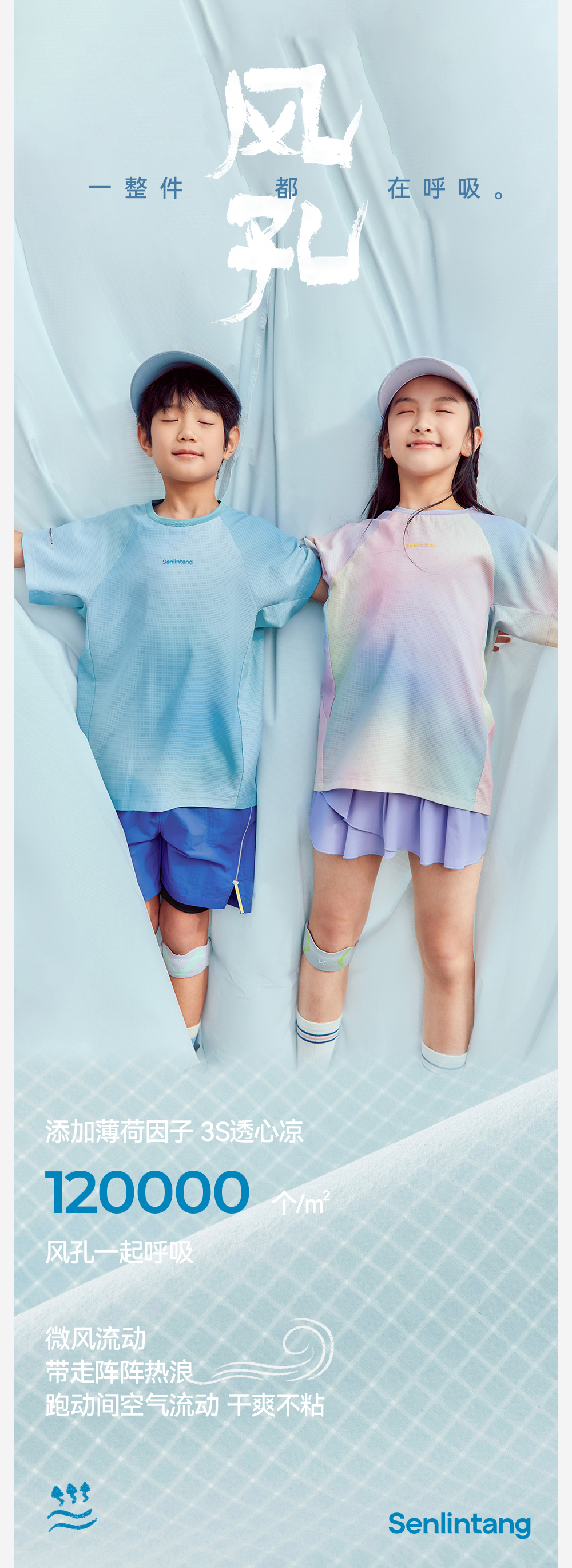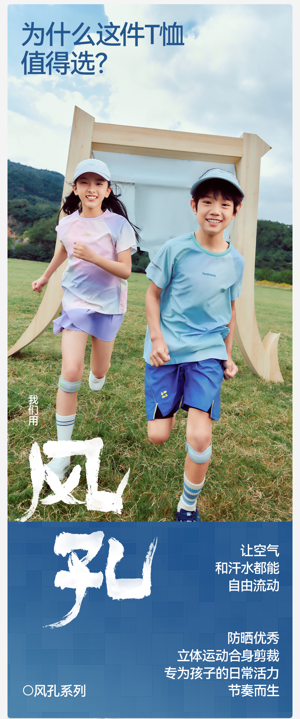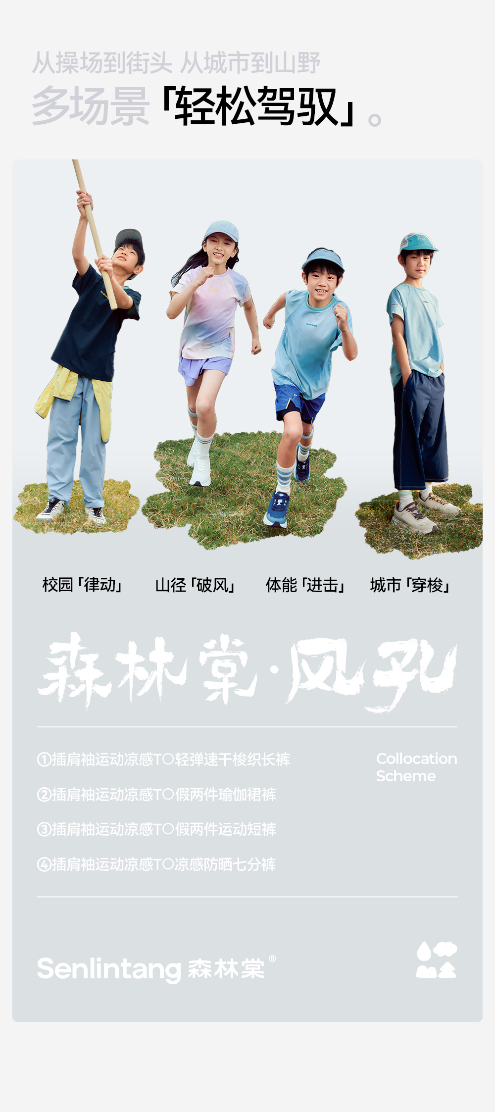 【插肩袖运动凉感T】森林棠26夏款风孔散热清凉透气儿童反光运动上衣40162024