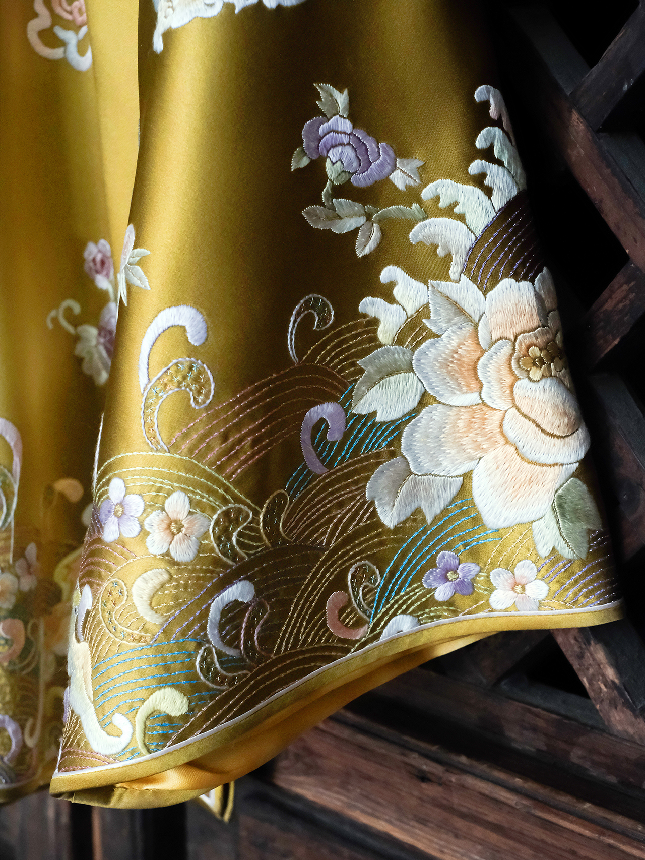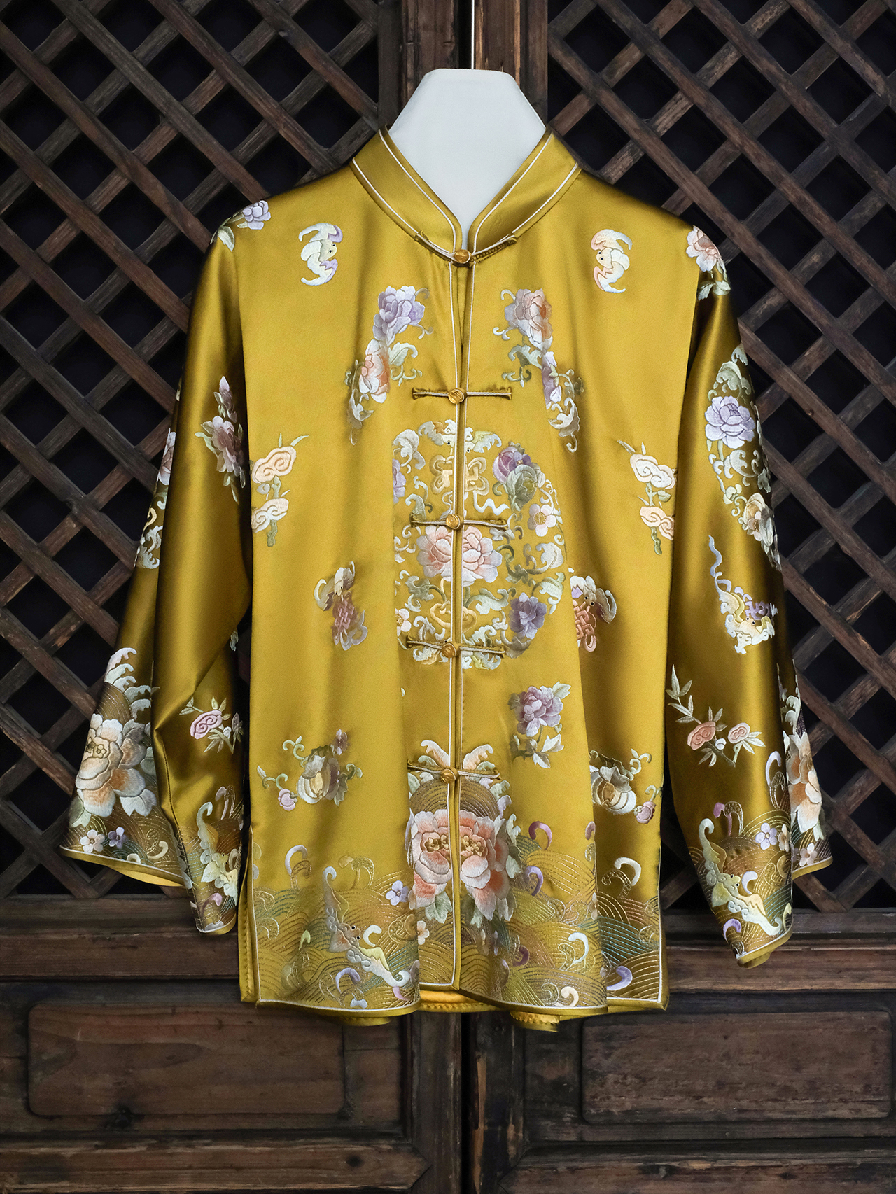 盛唐牡丹大师系列| 重工苏绣江崖海水纹外套-枇杷黄