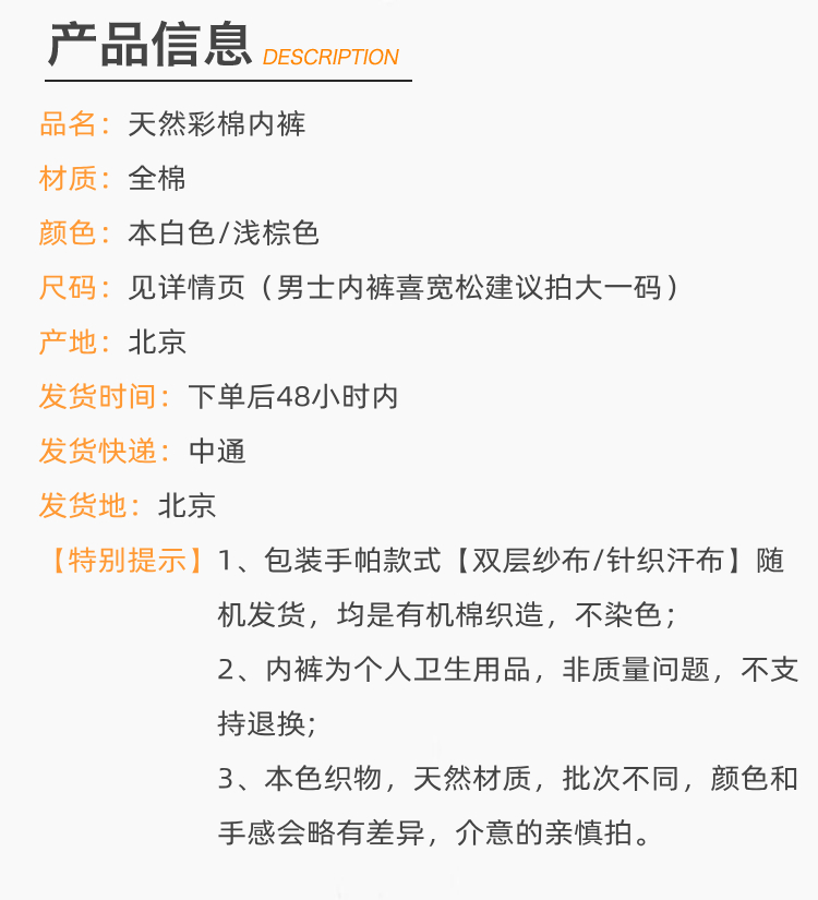 小亘 天然彩棉男女士中低腰内裤 2条【贴身衣物非质量问题不支持退换、常规地区满120包邮】