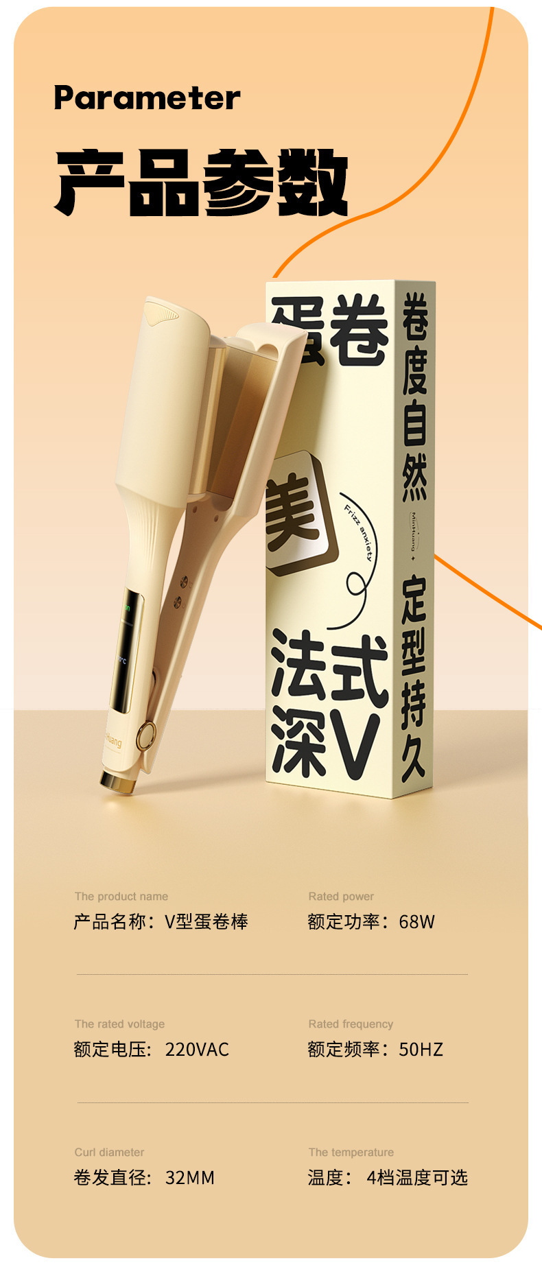 【百搭造型❗️深V型蛋卷发棒】千万级负离子,4档恒温调,控满足任何发质,智能断电更安全,水波纹大波浪蛋卷棒负离子自动卷卷发新年过年QQ